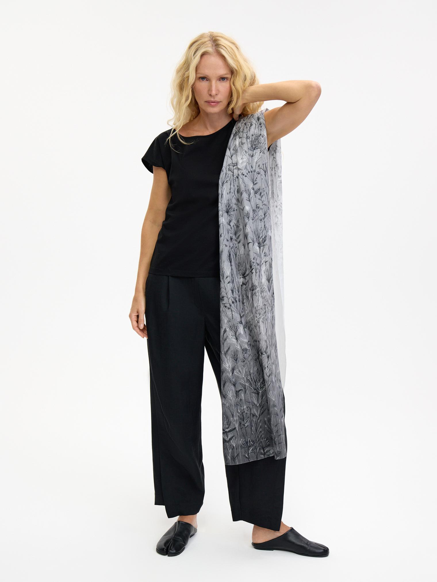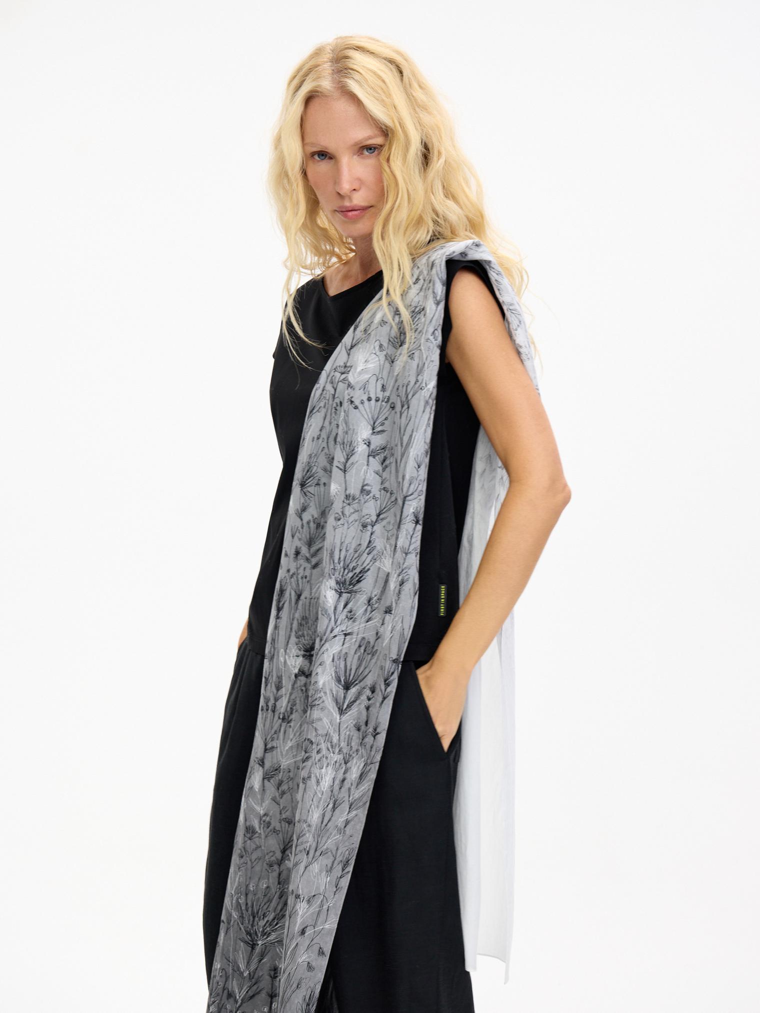 Нежный шарф их хлопка вуаль. Плавный переход градиента. Карандашная крафика. Создан для защиты от палящих летних солнечных лучей.