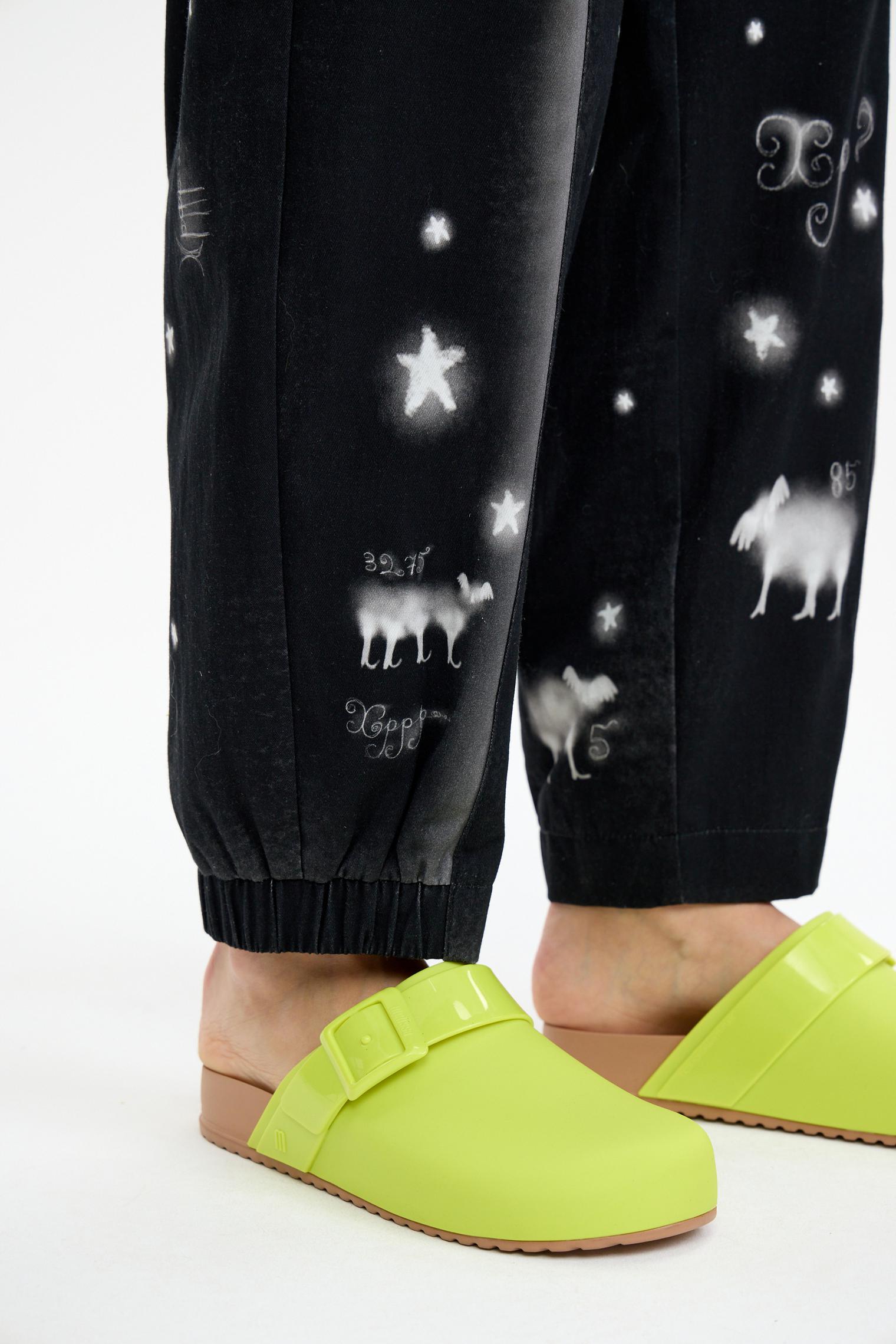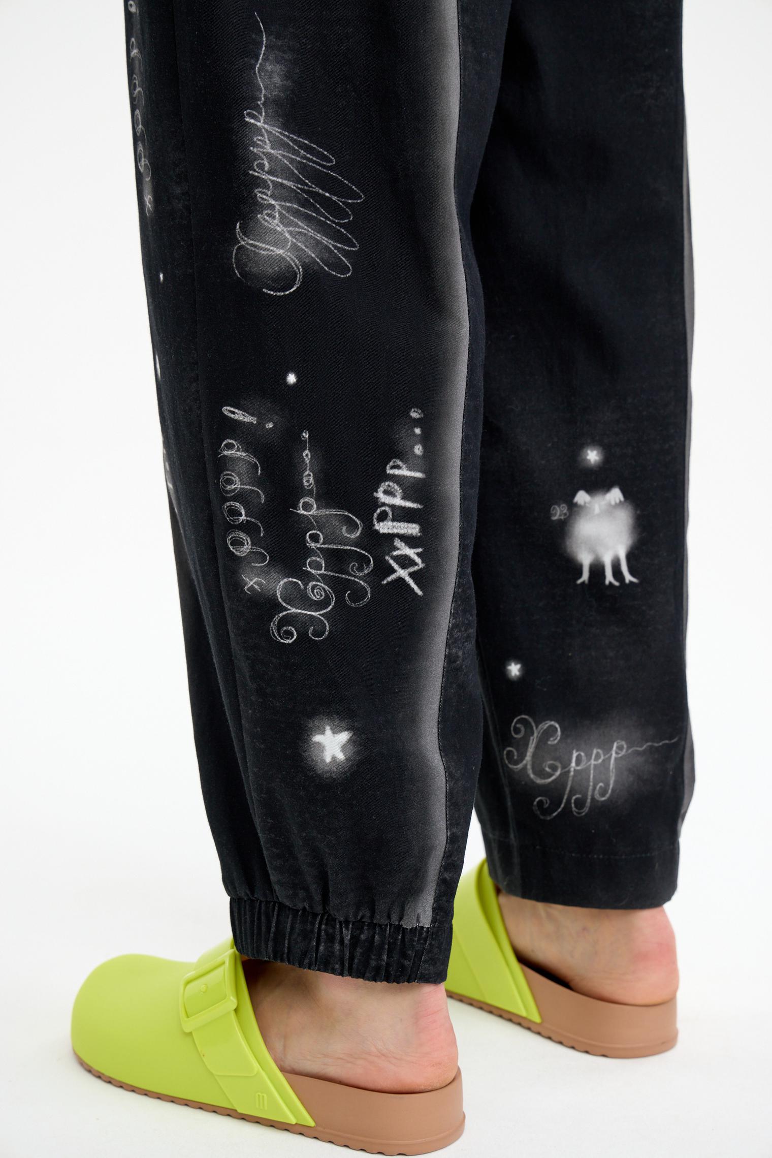 От дизайнера Лизы: «Костюм-вход в первую фазу сна. Когда лежишь в темноте и считаешь овец. Брюки 7026-082-09 – начало отсчета, в котором овцы перепрыгивают через забор, и на цифре 10000 наступает дремота, и овцы превращаются в непонятных существ на жакете 4026-082-06, будь то единорог или ходячий дом...»