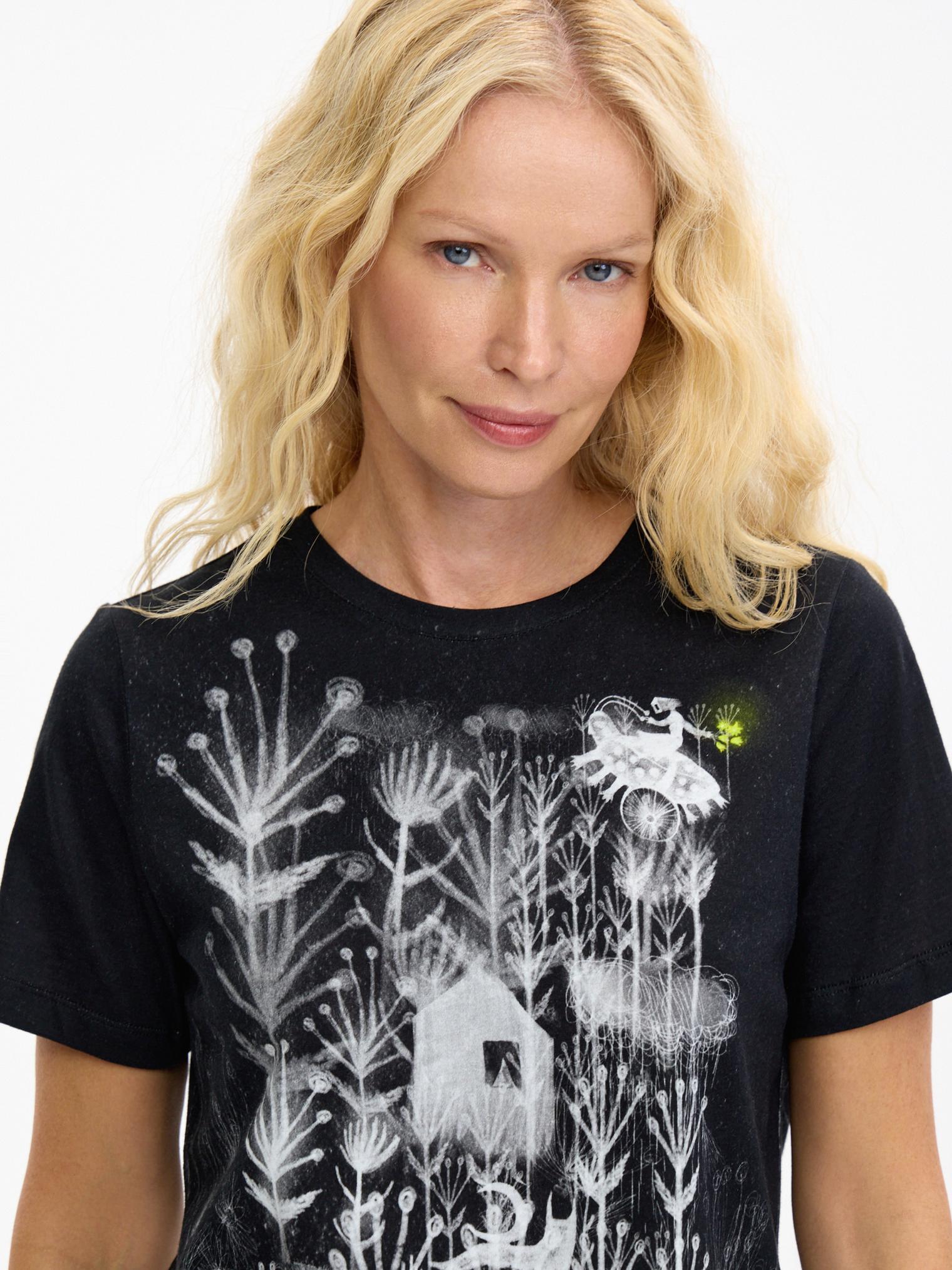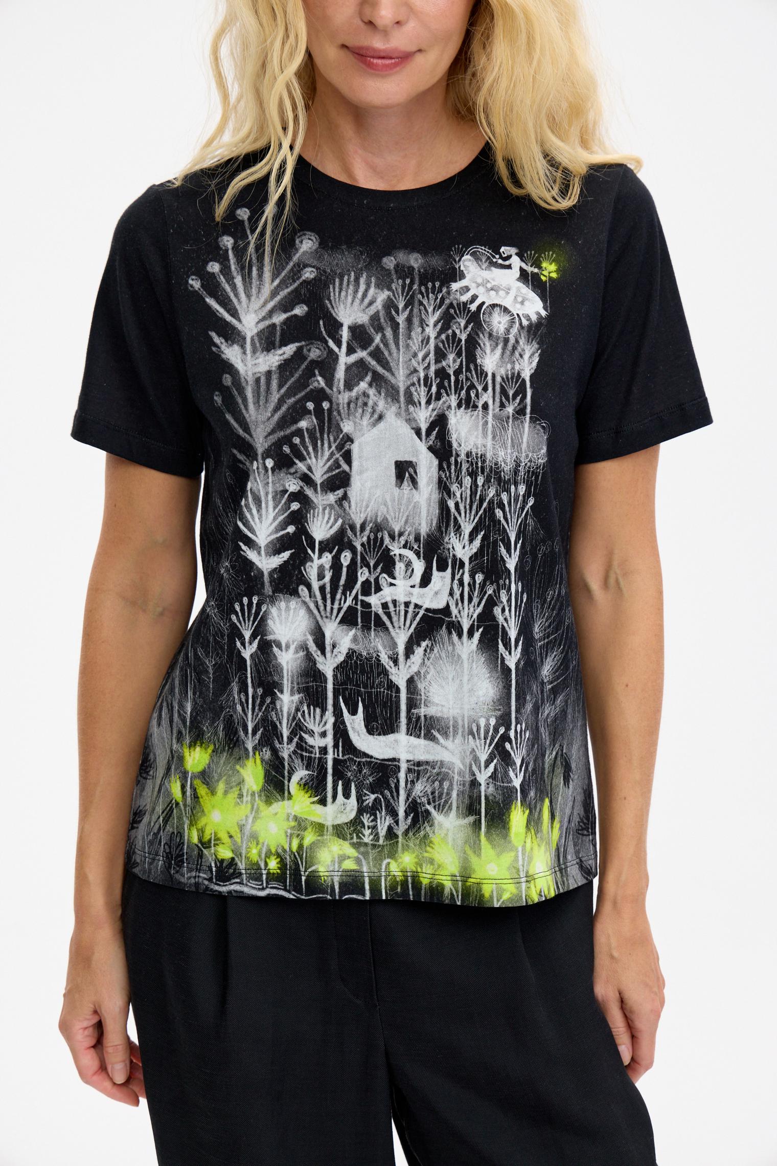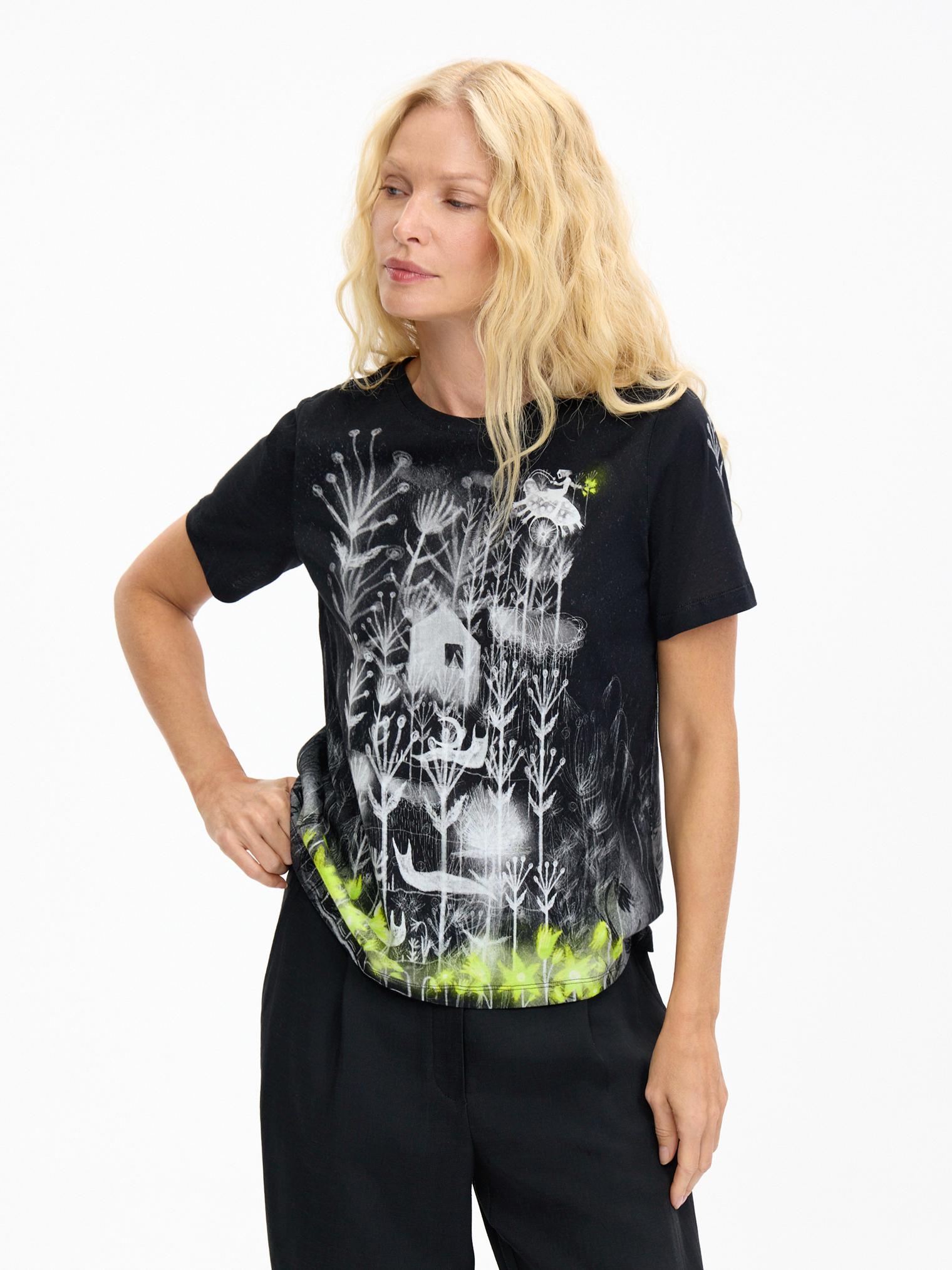 Базовый крой, мягкий хлопковый трикотаж и графичный принт с яркими акцентами – в этой футболке сложилось все, чтобы стать эффектным акцентом коллекции. Поистине притягивает взгляды и вызывает непреодолимое желание обладания!