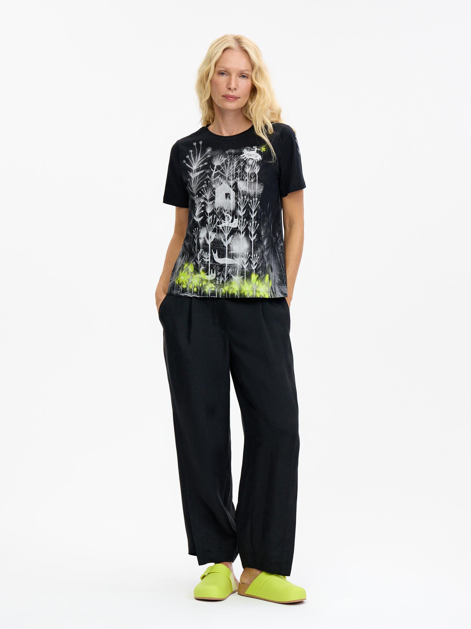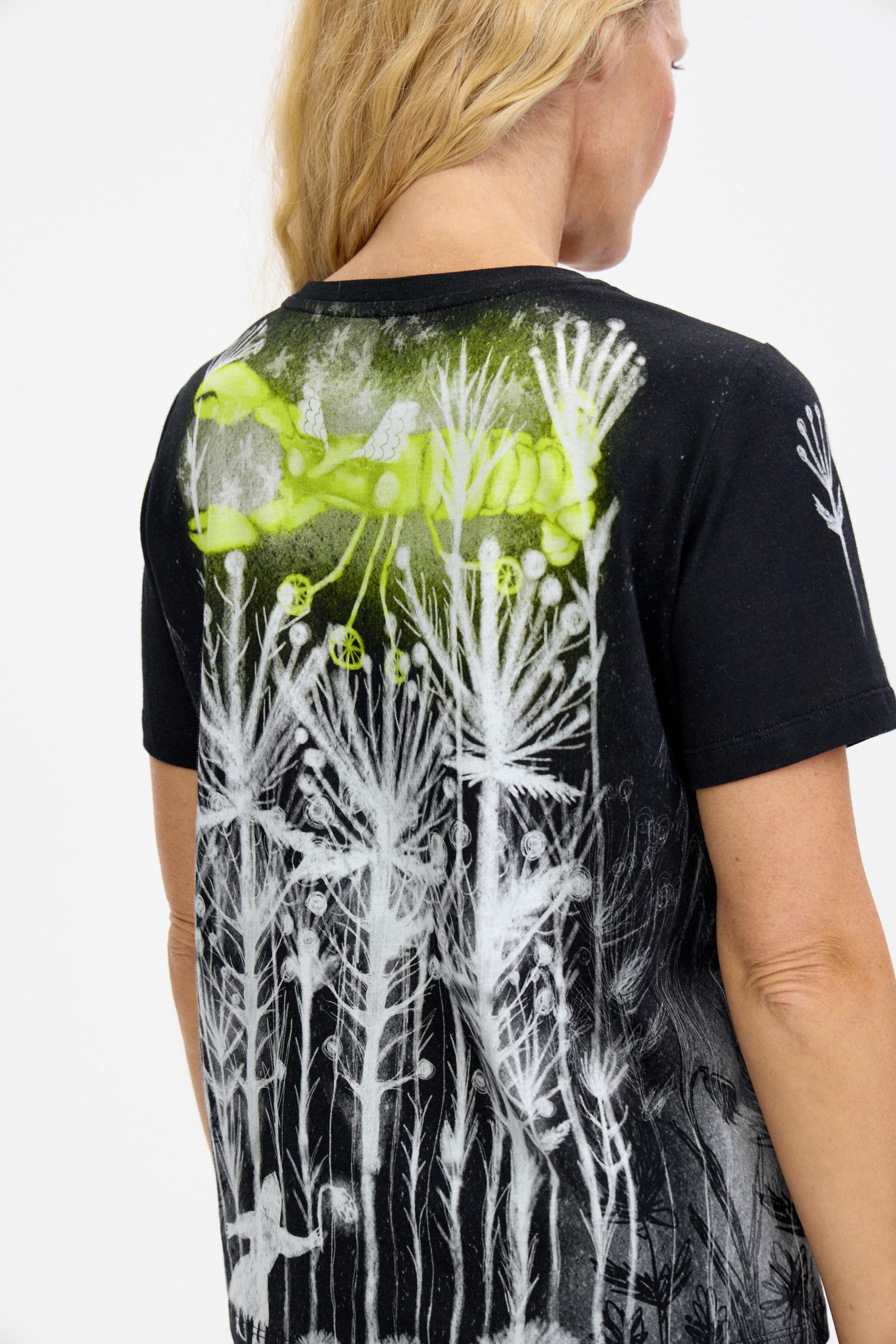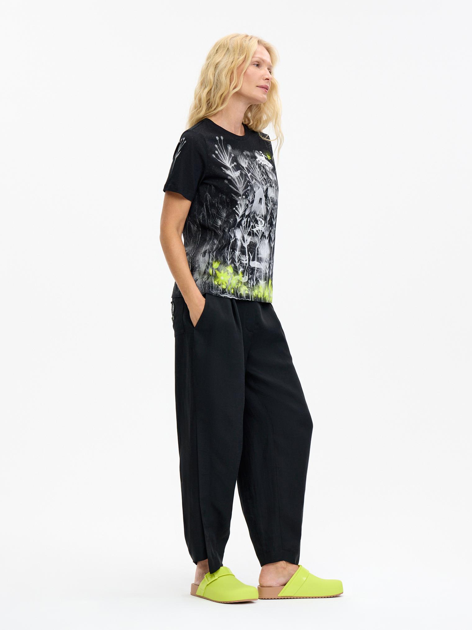 Базовый крой, мягкий хлопковый трикотаж и графичный принт с яркими акцентами – в этой футболке сложилось все, чтобы стать эффектным акцентом коллекции. Поистине притягивает взгляды и вызывает непреодолимое желание обладания!