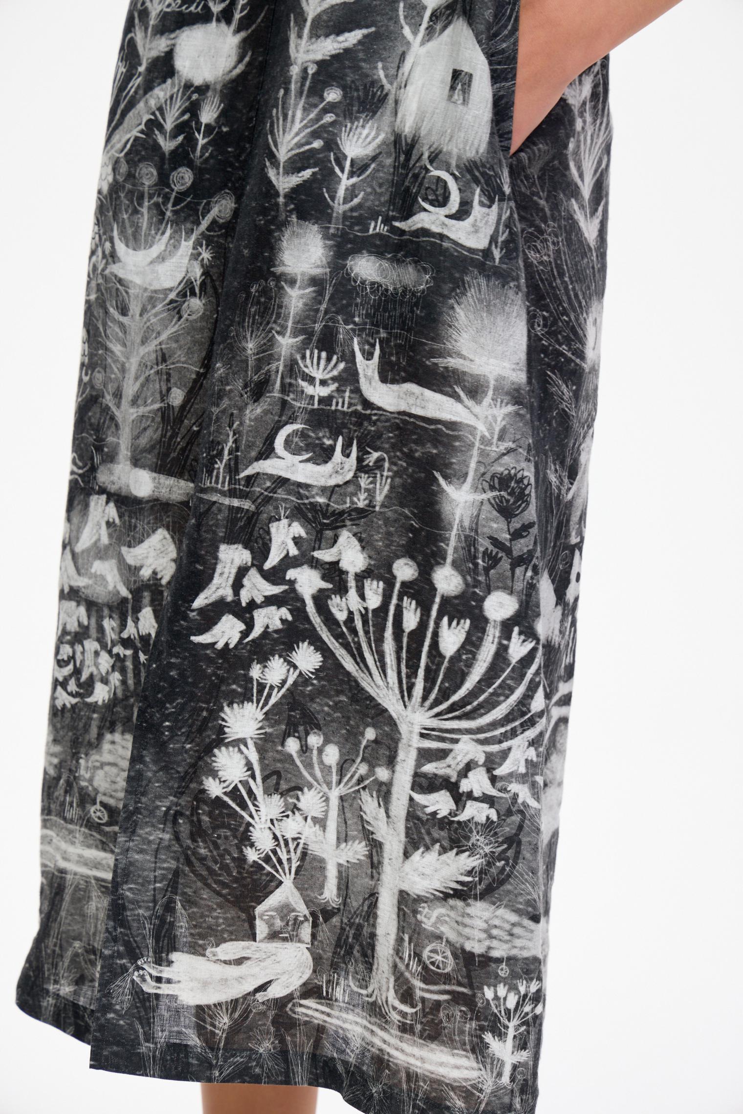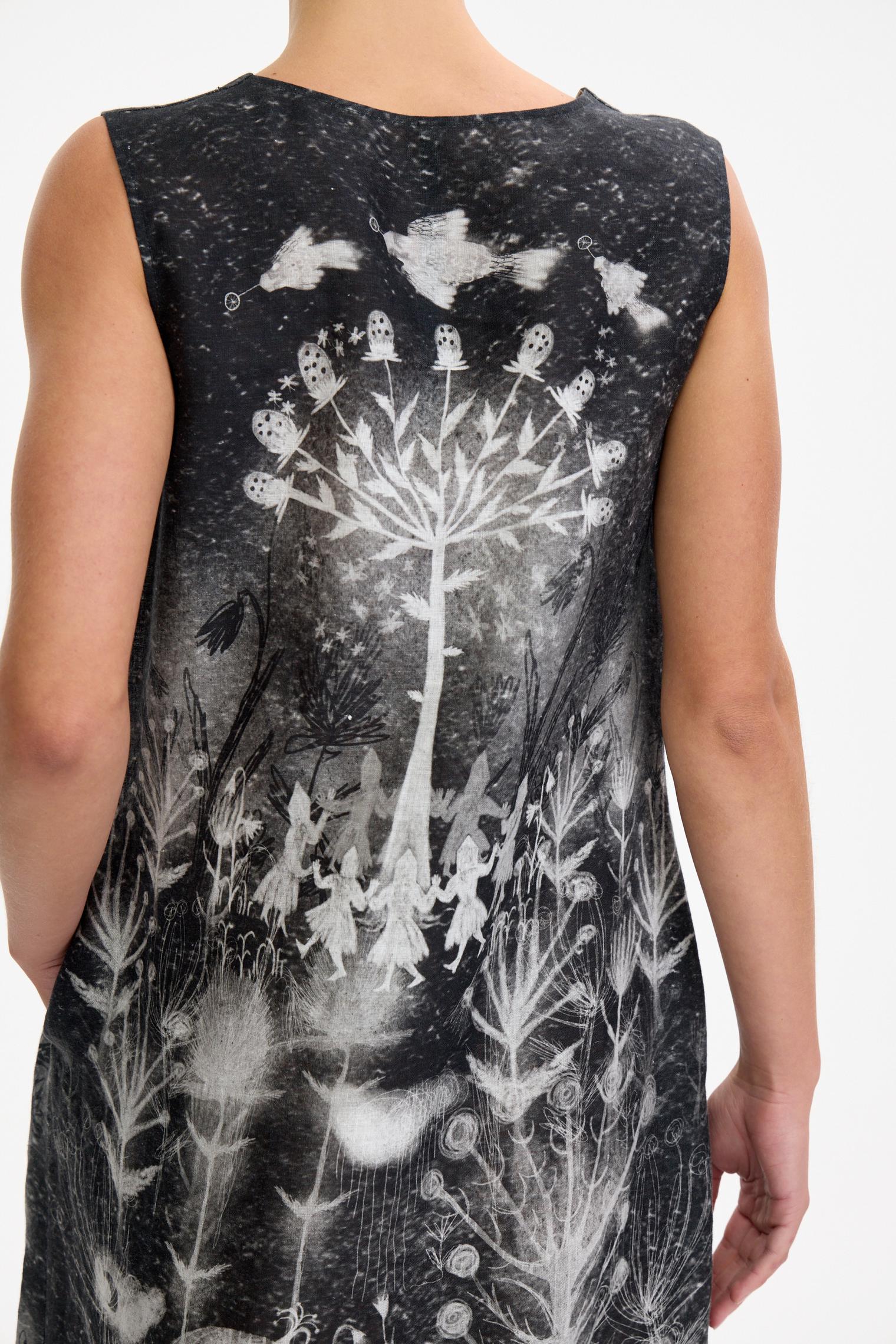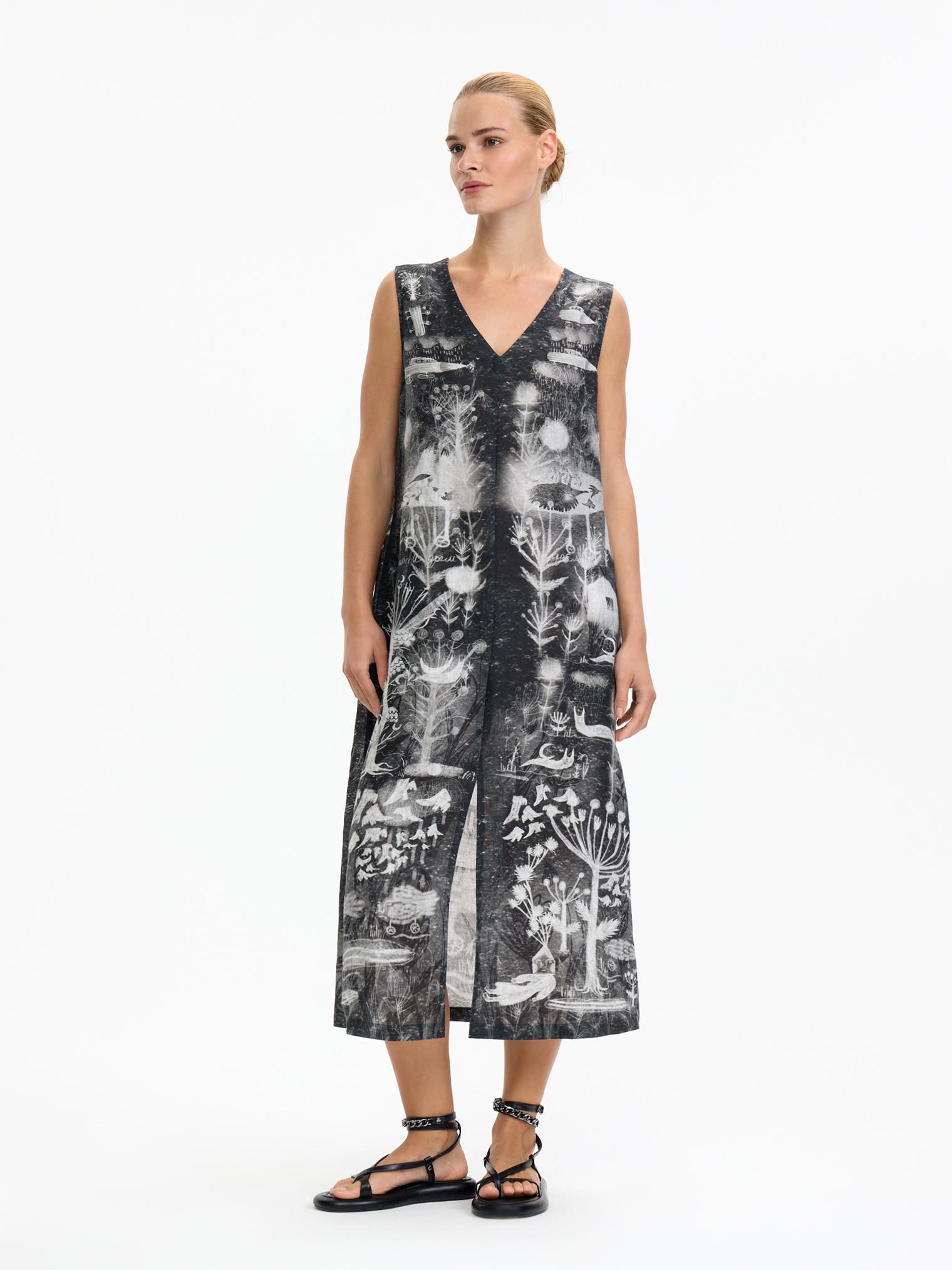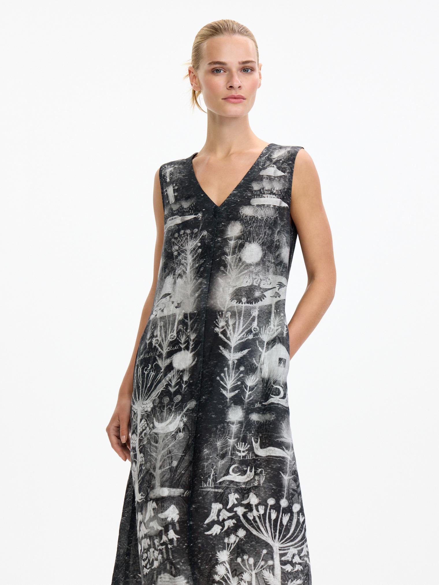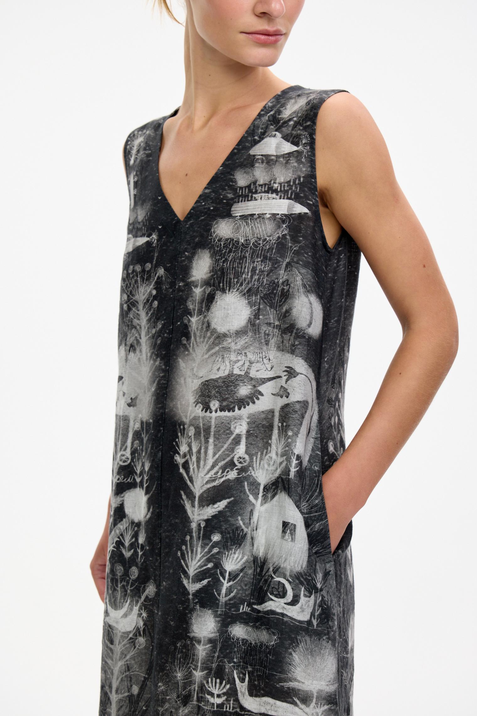 Даже не знаем, что может быть лучше платья из натурального льна? Наверное, только удлиненное платье-майка из натурального льна со сказочно красивым принтом! Его изысканная графика заставит забыть о других цветах на какое-то время, царить будет черно-белая утонченность.