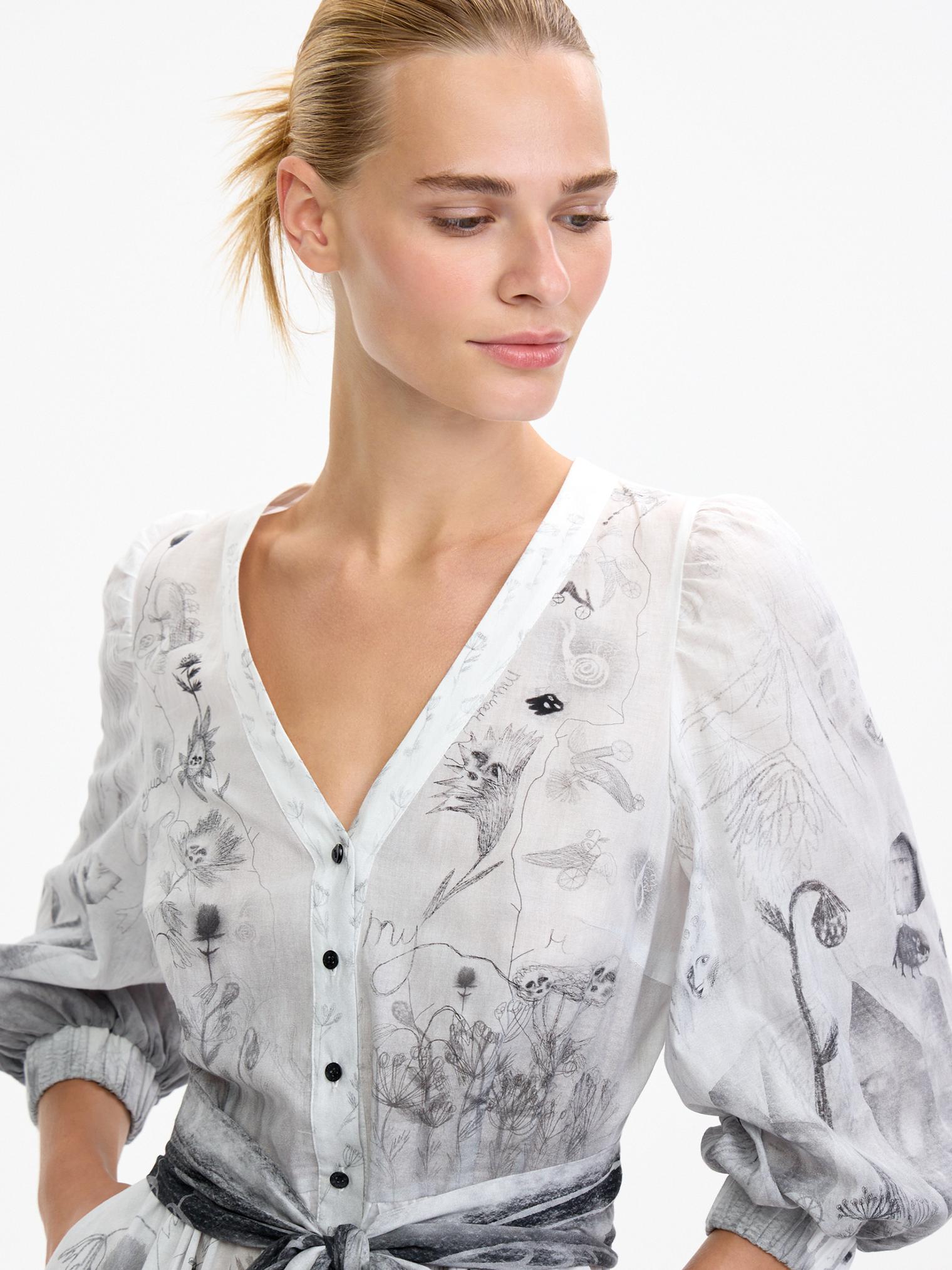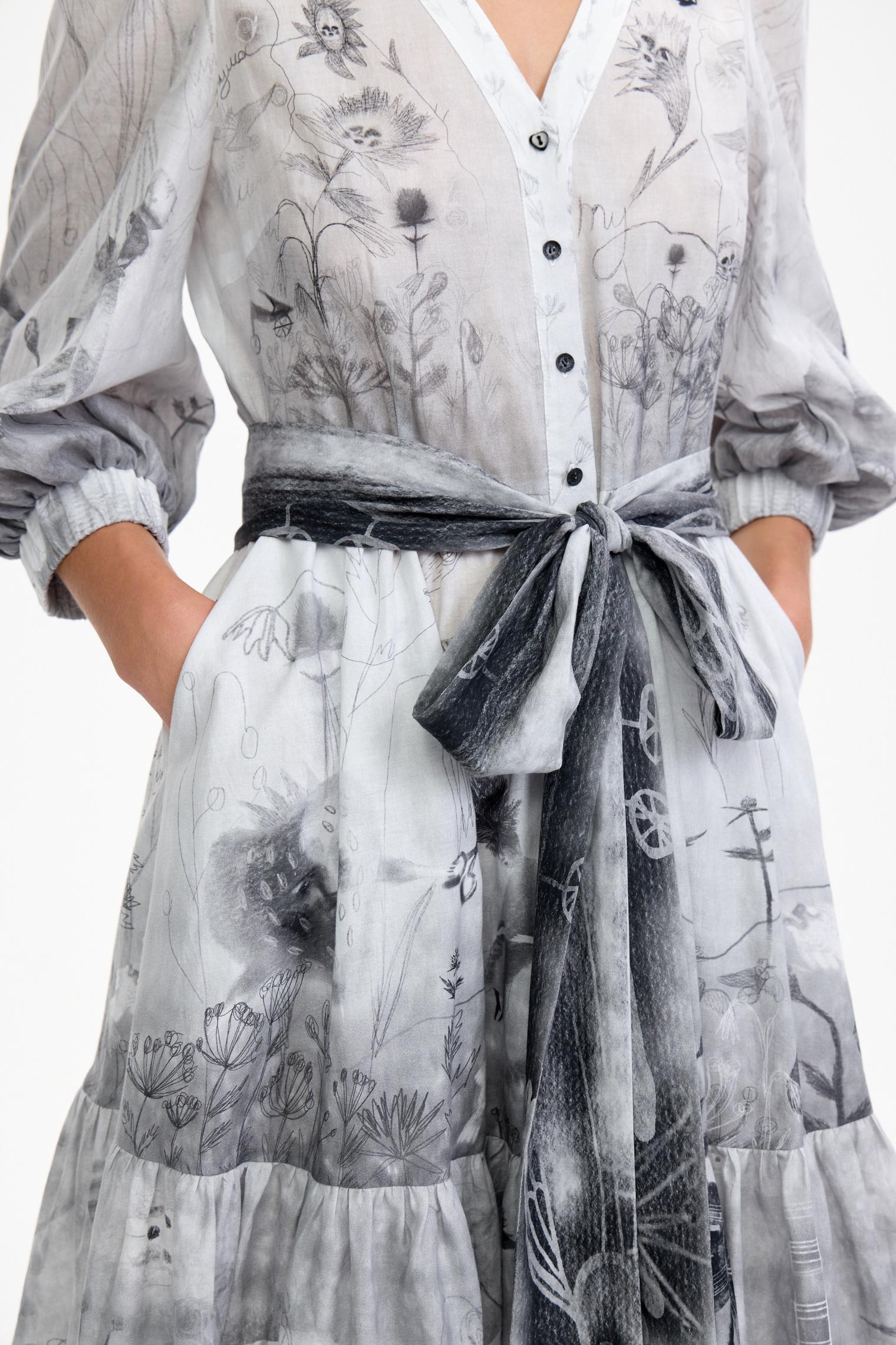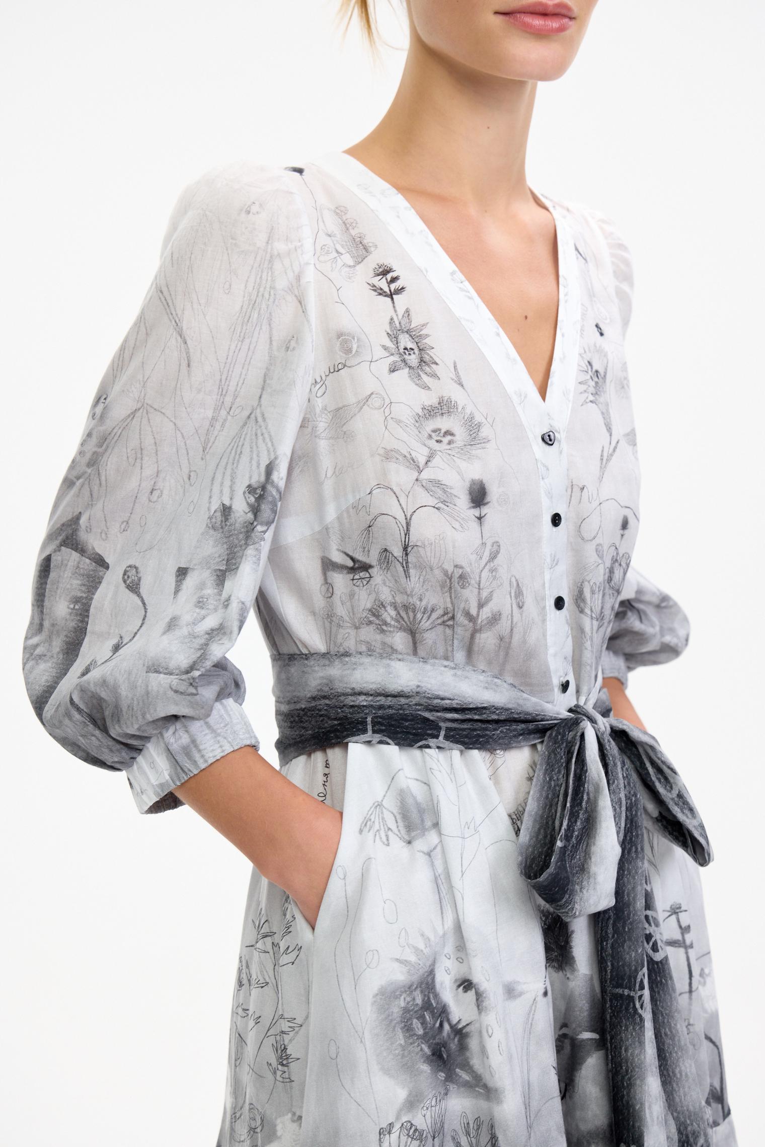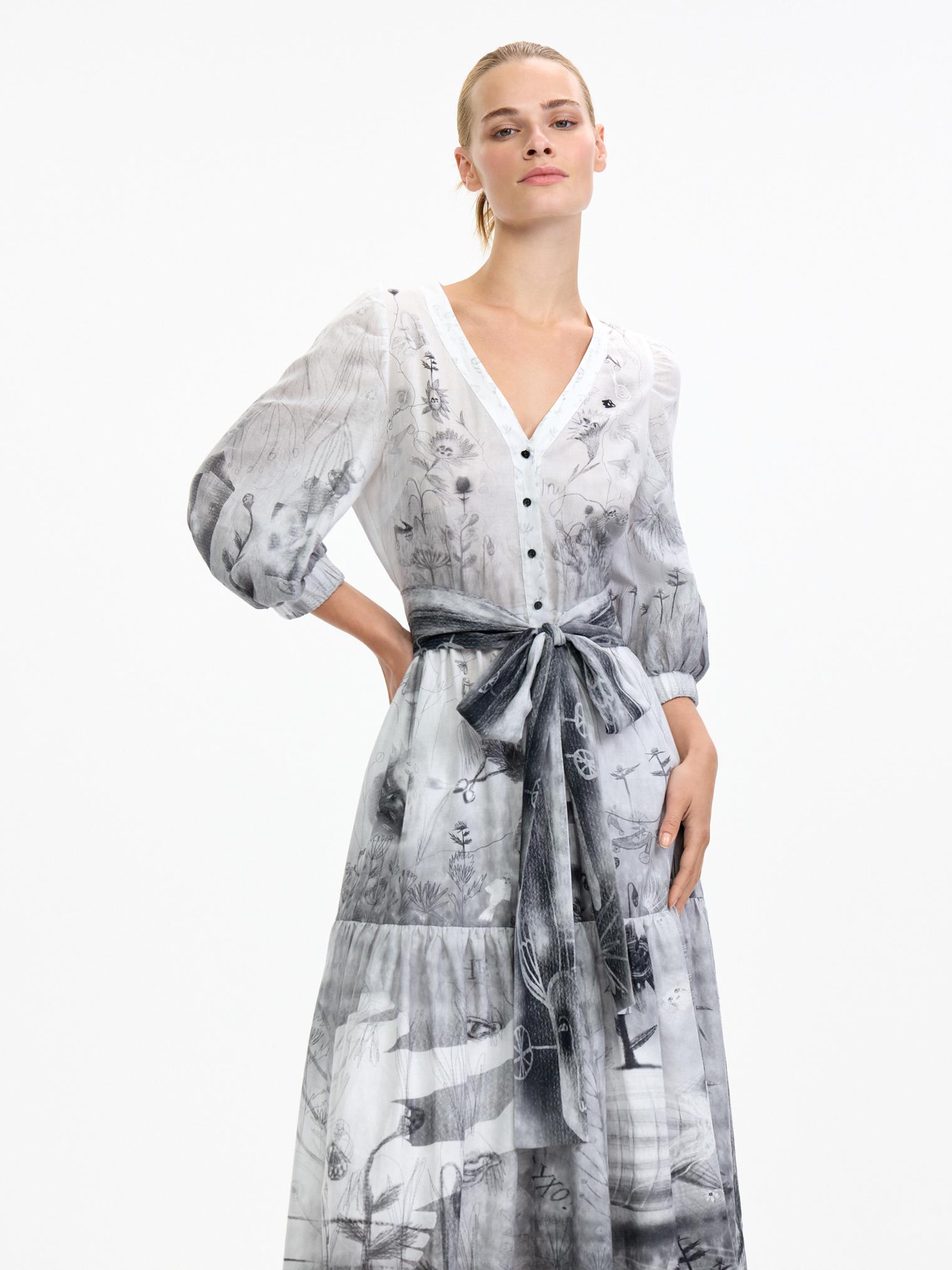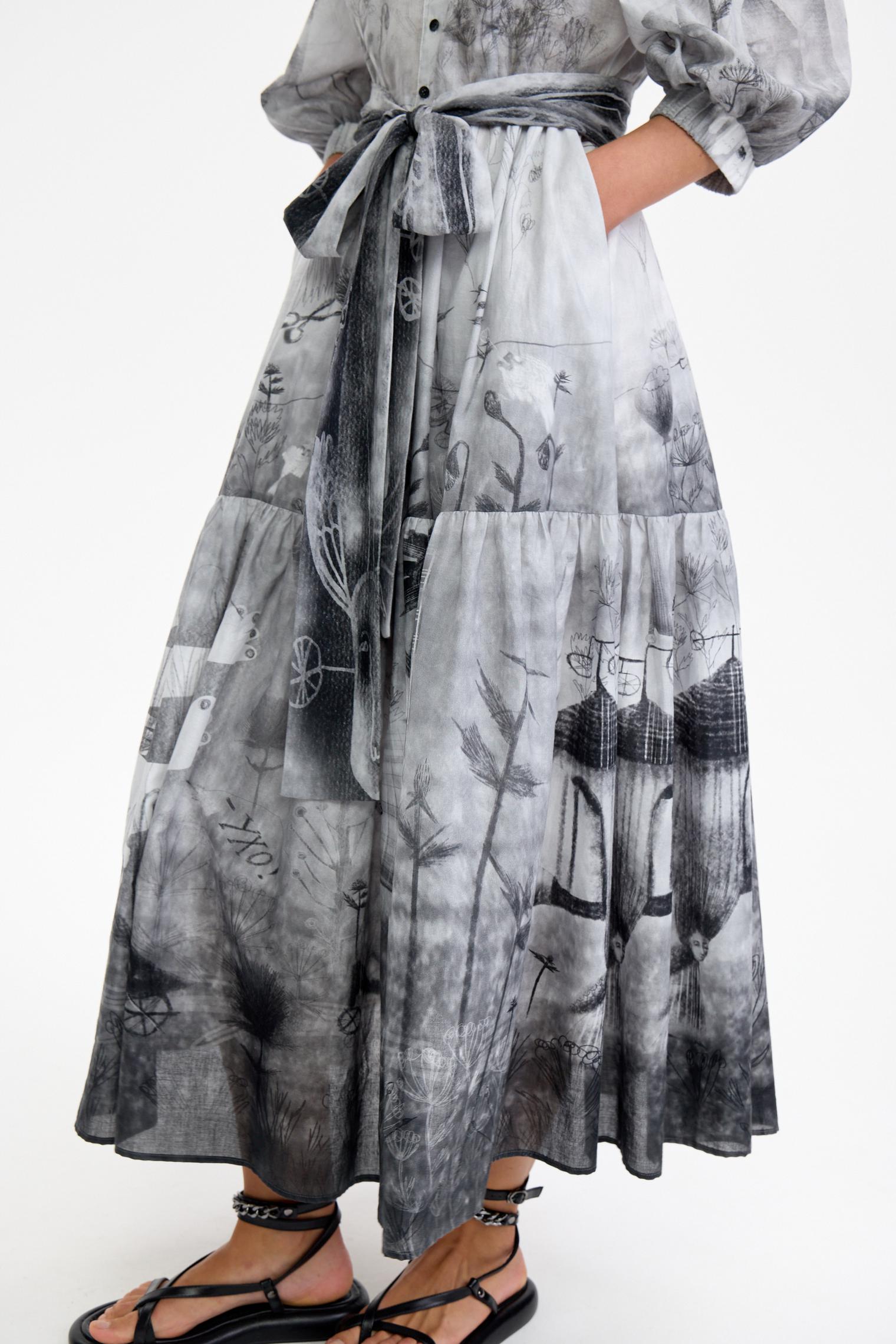Романтичное платье летящего силуэта из нежнейшей хлопковой вуали уникально своим сложным дизайнерским принтом – присмотритесь, не правда ли завораживает и уносит в мир грез? А может, вы видели его во сне?)