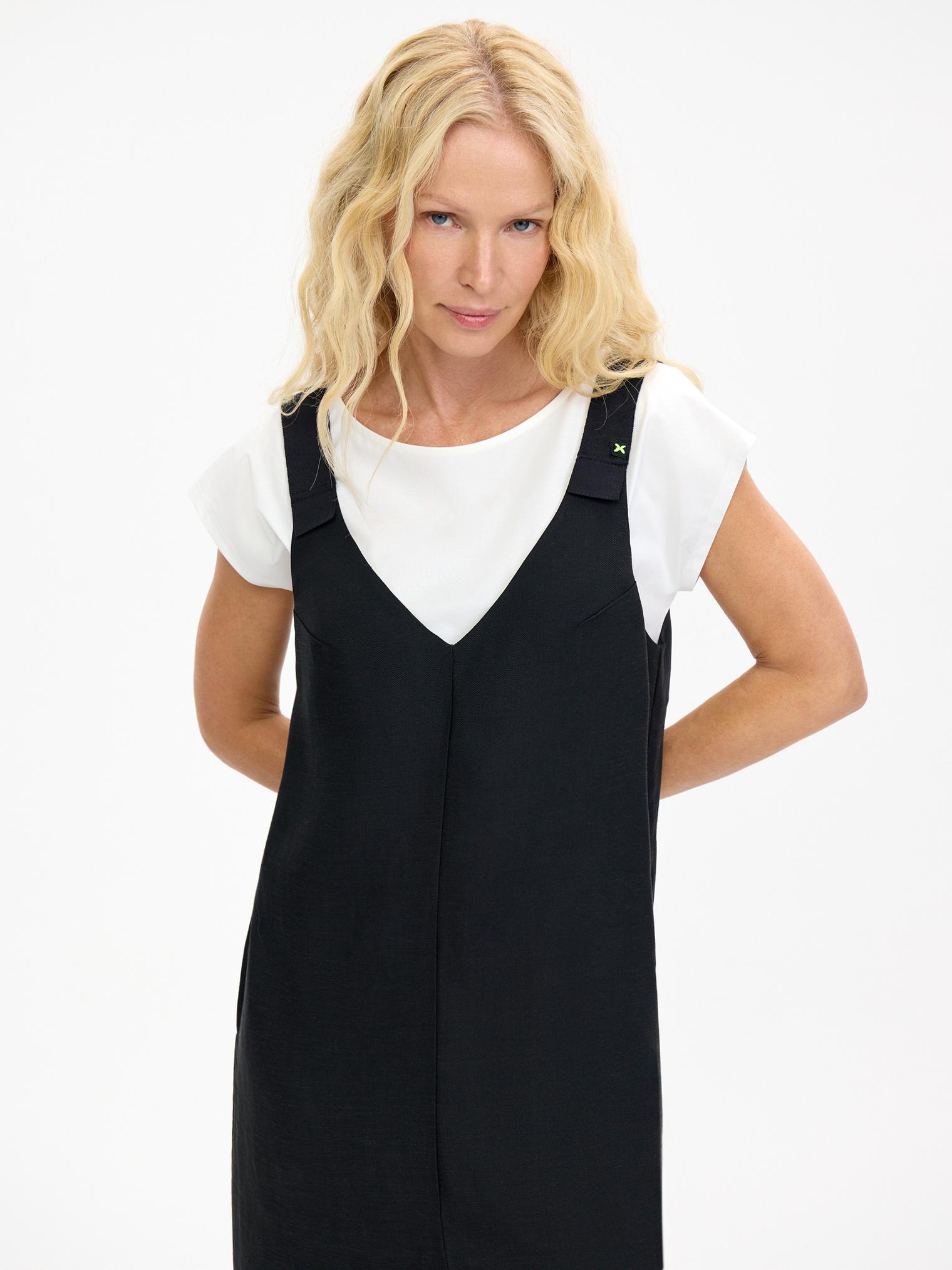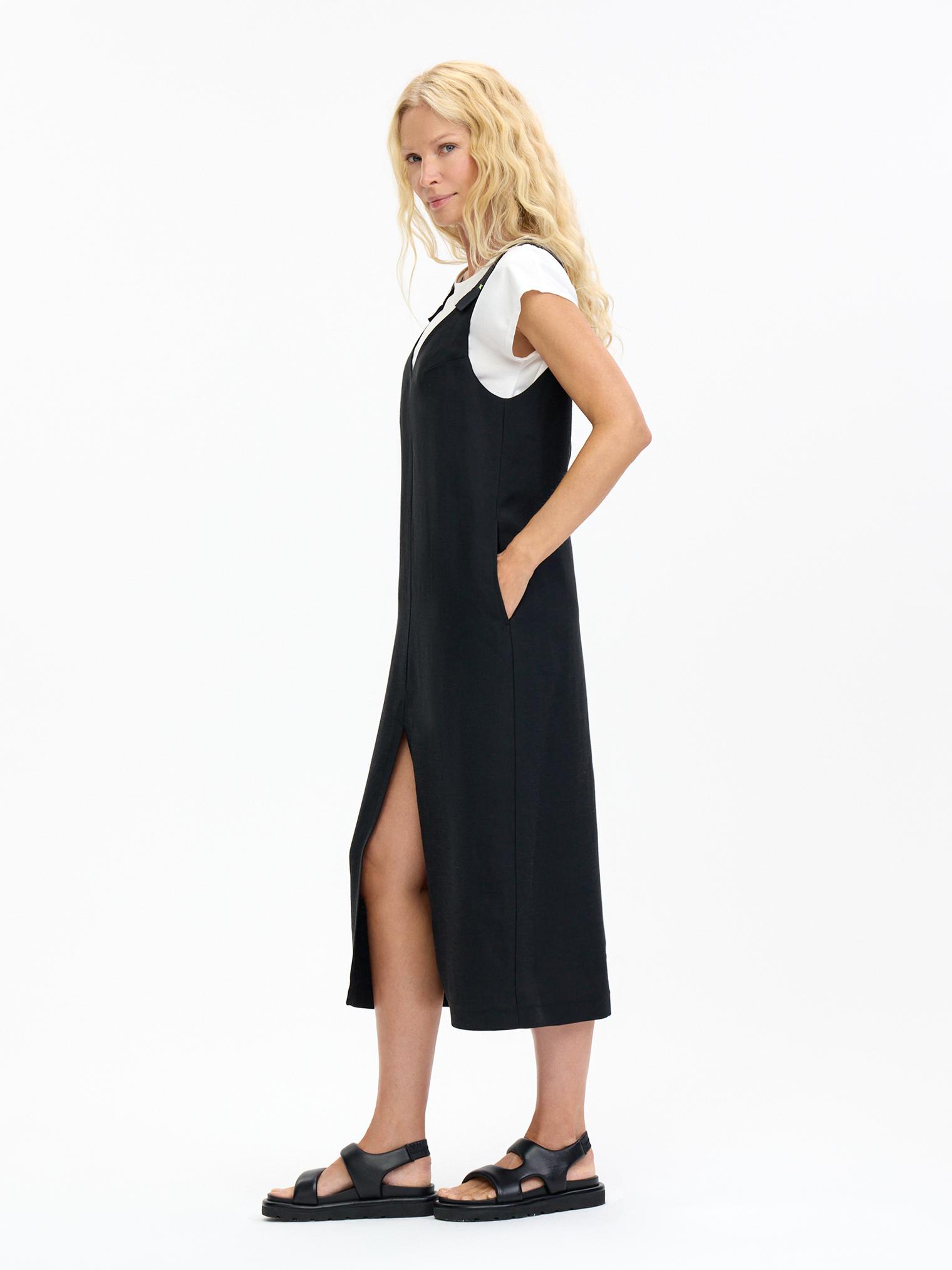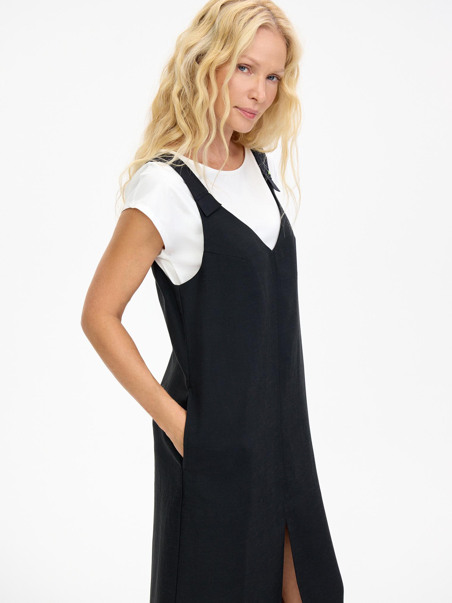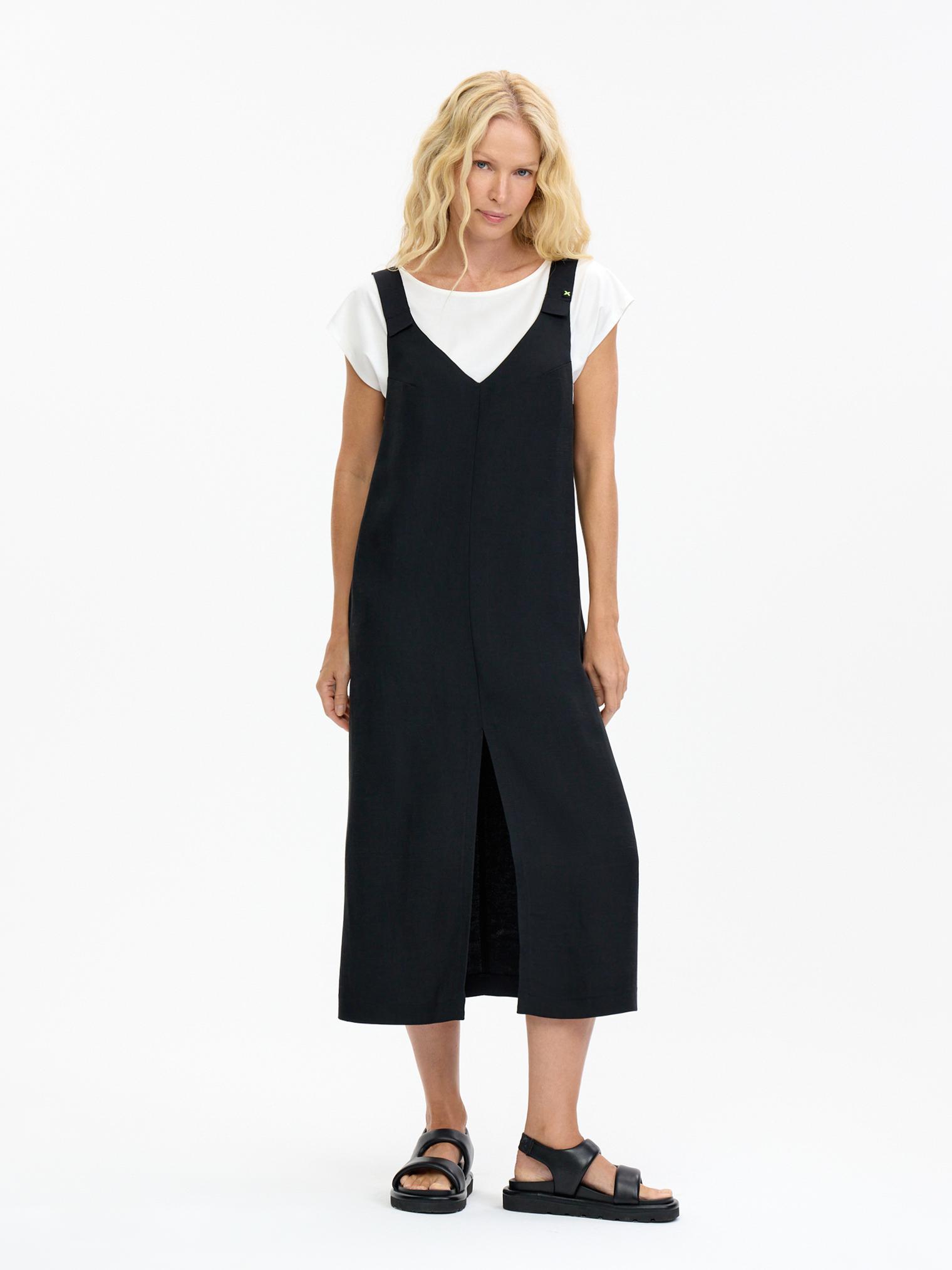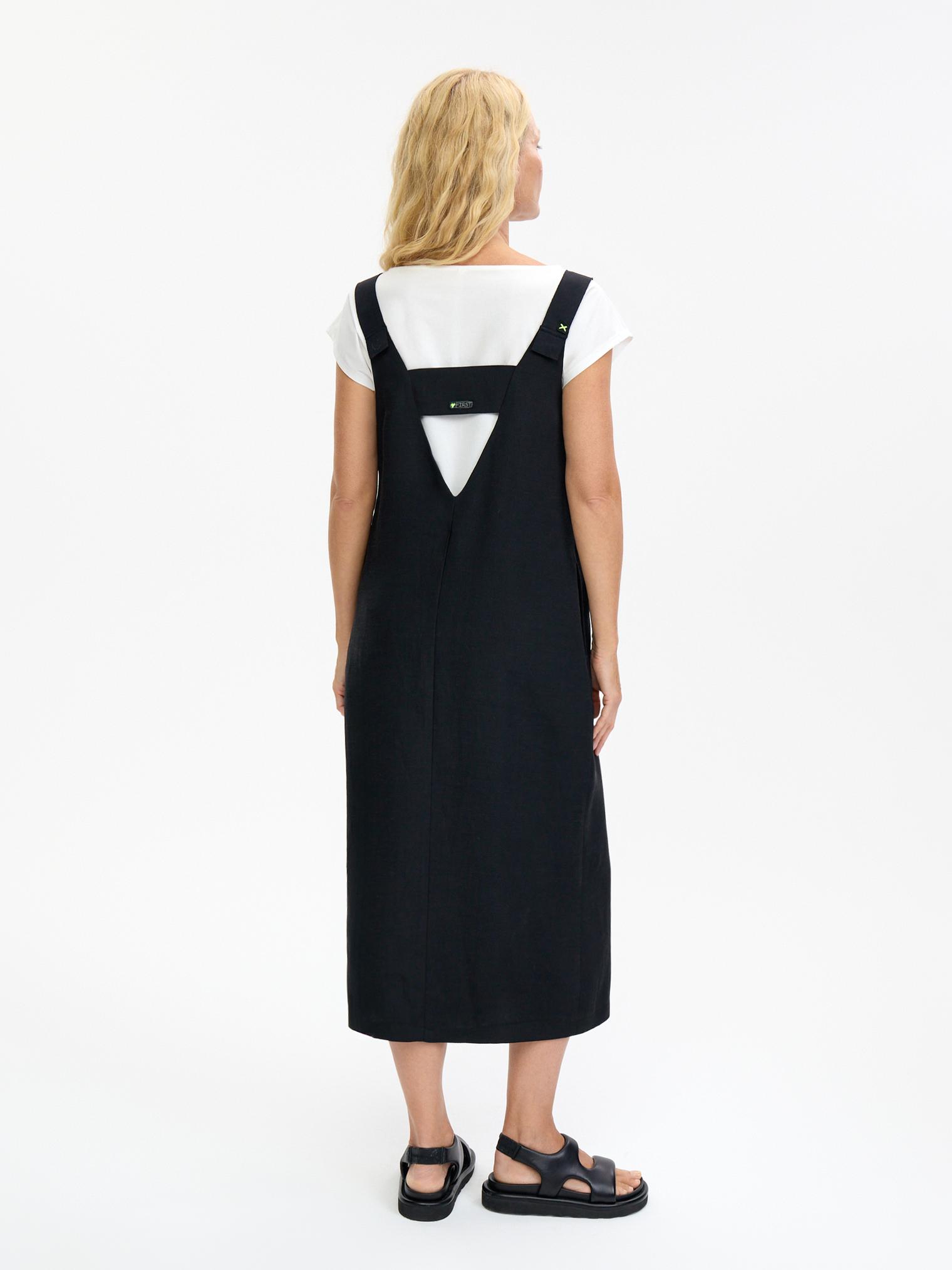 Сарафан из льно-вискозной смесовой ткани прост на первый взгляд, но именно минималистичность сделает его вашей любимой вещью на лето. Комфортный объем, идеальная посадка, боковые карманы - что еще нужно для счастья обладательницы?) А главный секрет его в том, что он легко может стать самостоятельным платьем для ваших вечерних выходов!