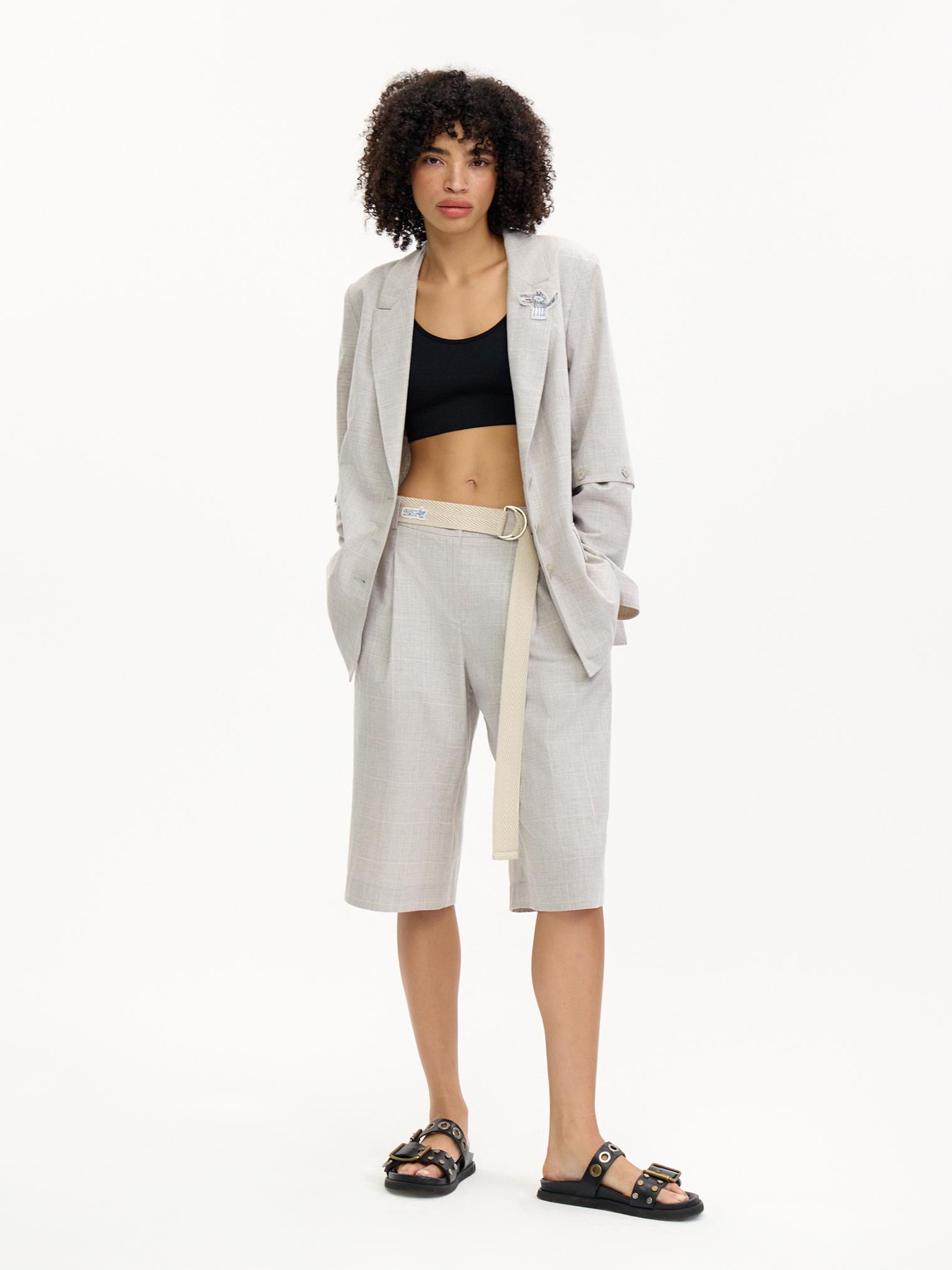 Стильные шорты со стрелками, боковыми карманами и декоративным ремнем - достойная альтернатива брюкам или юбке. Рекомендуем сочетать с жакетом-трансформером 4026-092-06 из аналогичного материала для гармоничного летнего образа.