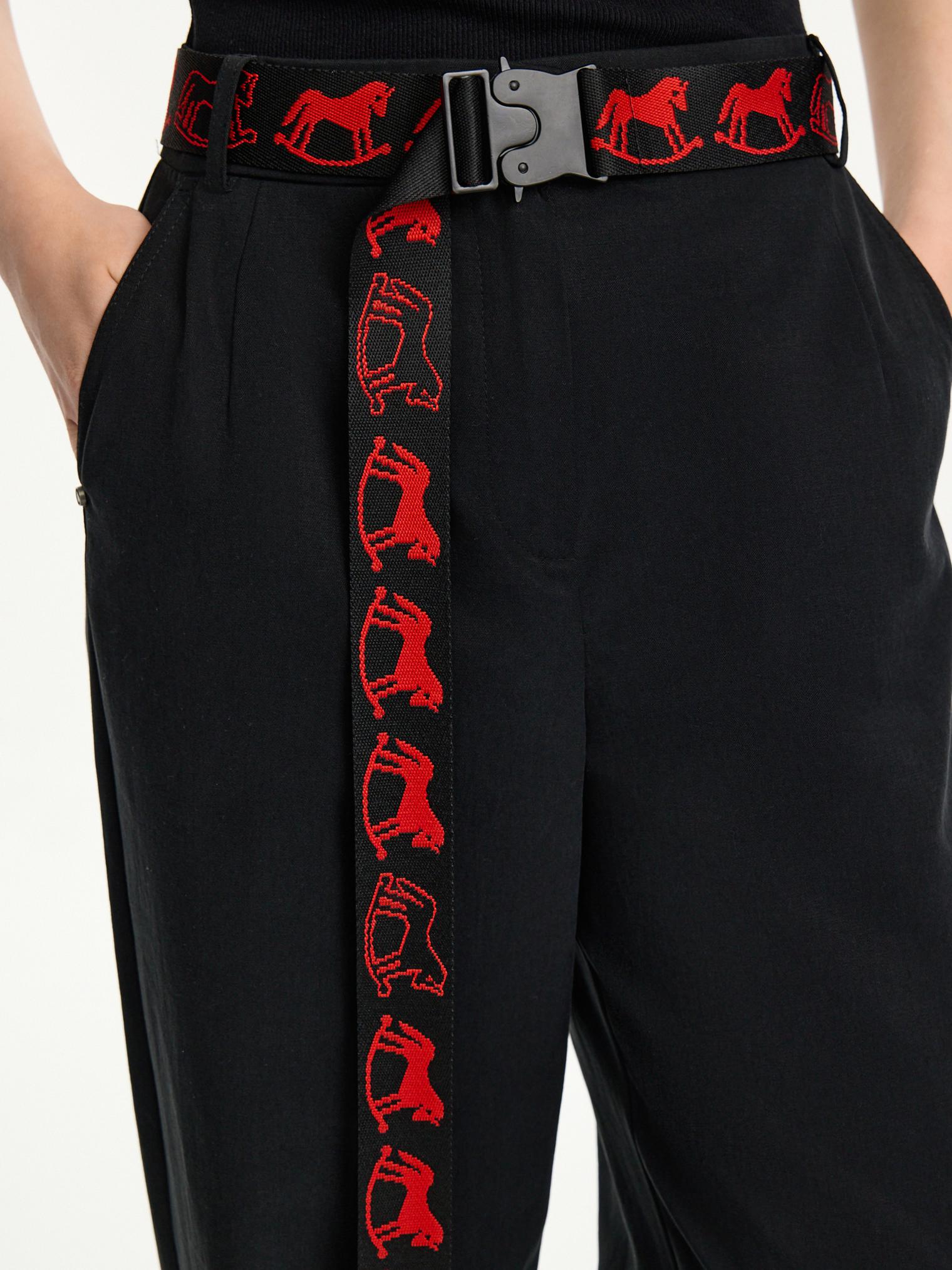 Жаккардовый пояс с контрастным брендингом - качающимися лошадками. Подходит ко всем брюкам капсулы.