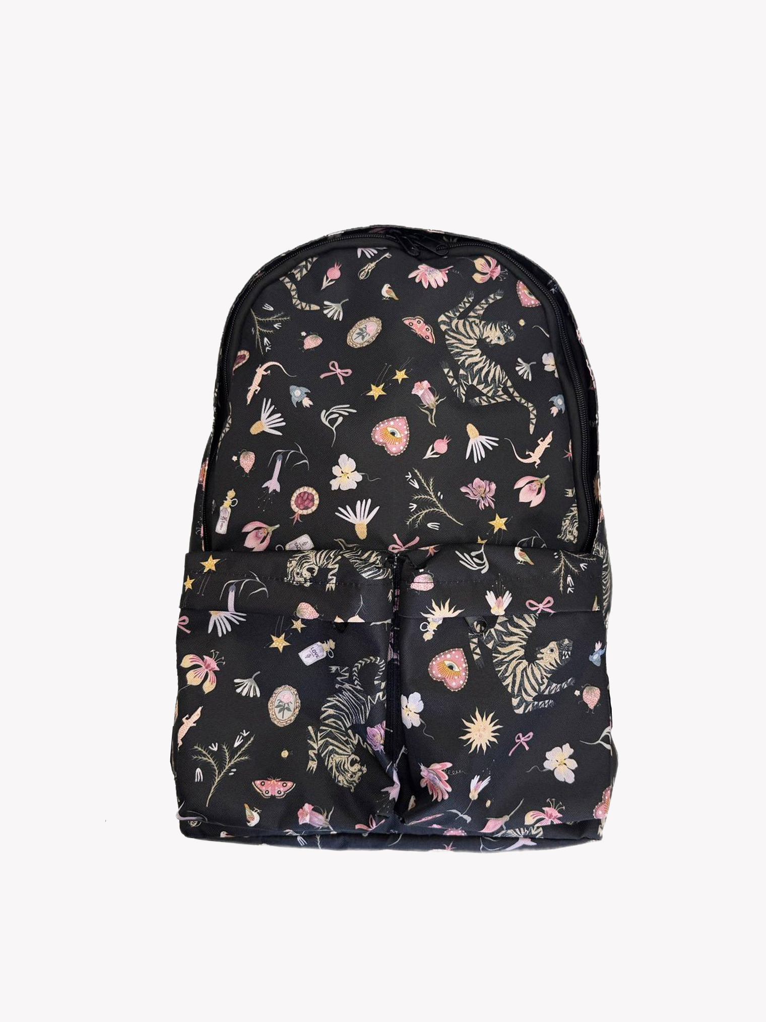 Объемный рюкзак из износостойкого водоотталкивающего оксфорда с контрастным ярким принтом. Есть внутреннее отделение для ноутбука, внешние карманы на молниях.