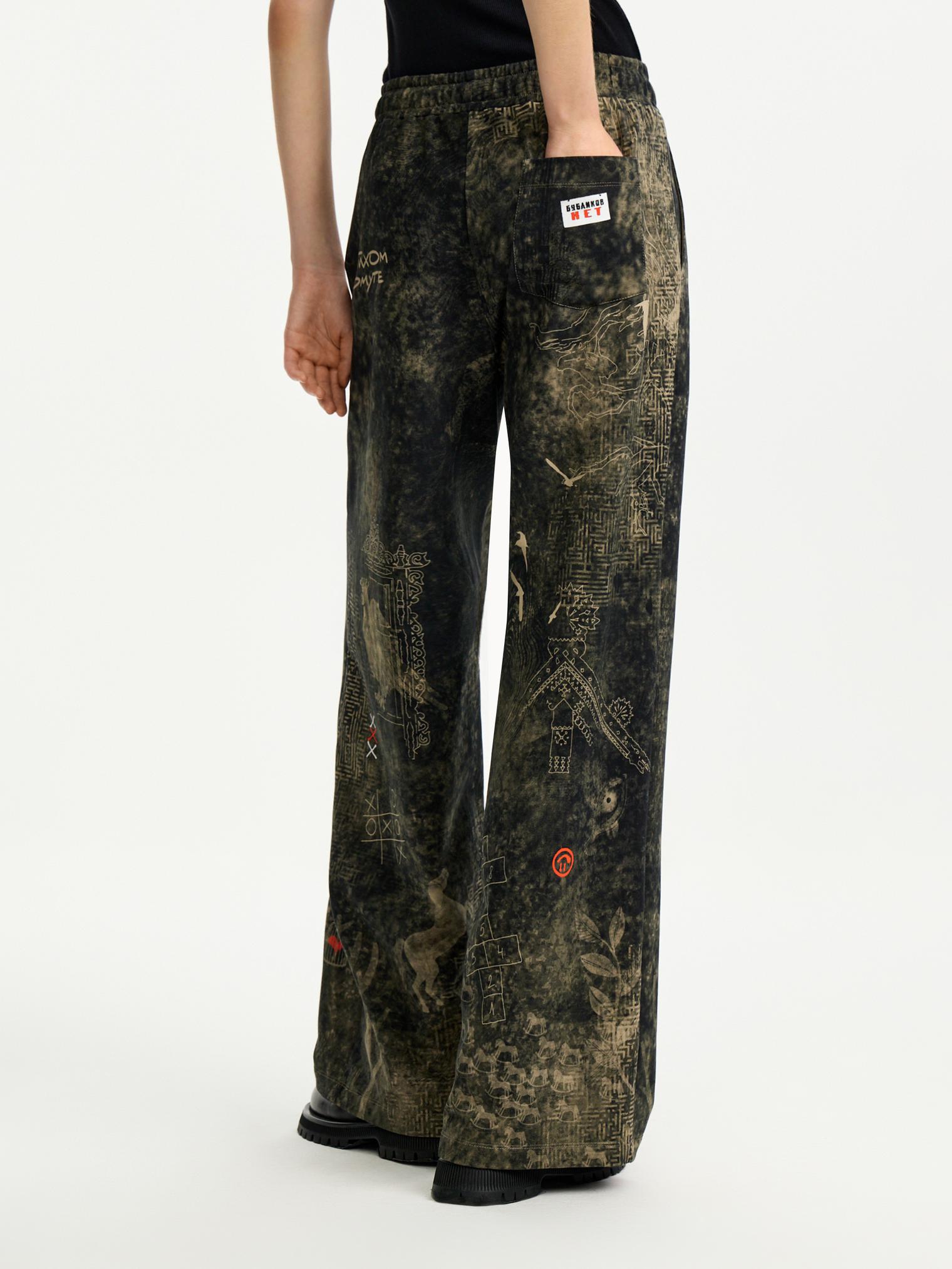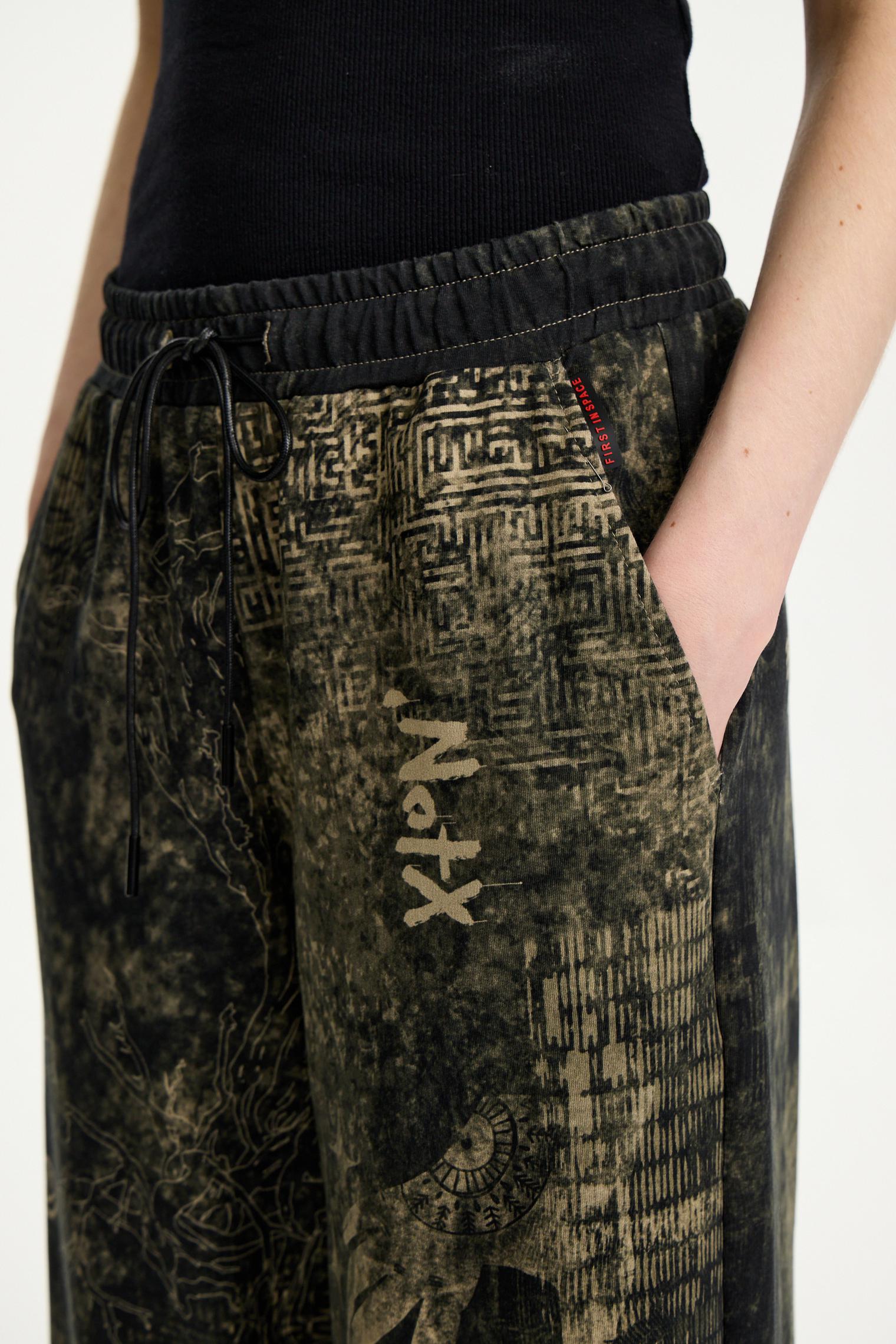 Брюки в спортивном стиле из футера 2-х нитки станут акцентным дополнением гардероба. Модель широкого кроя на эластичном поясе со шнурком . Идеально сочетается с толстовкой с аналогичным принтом.