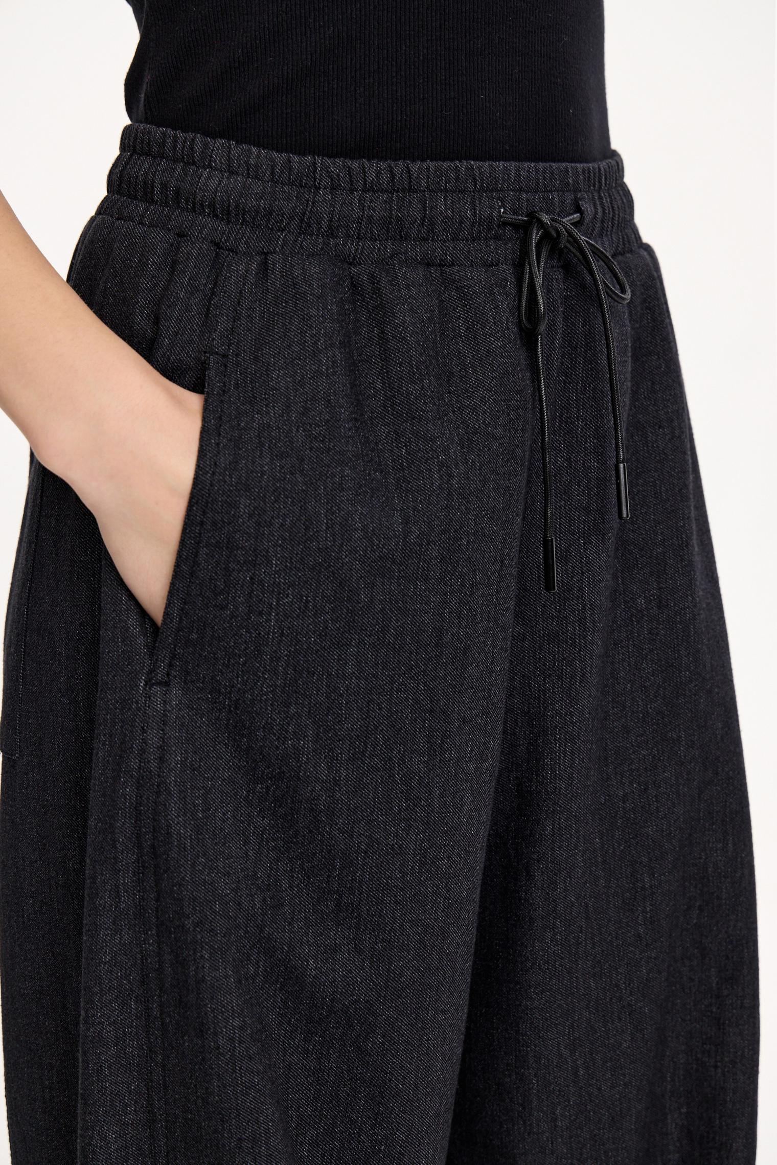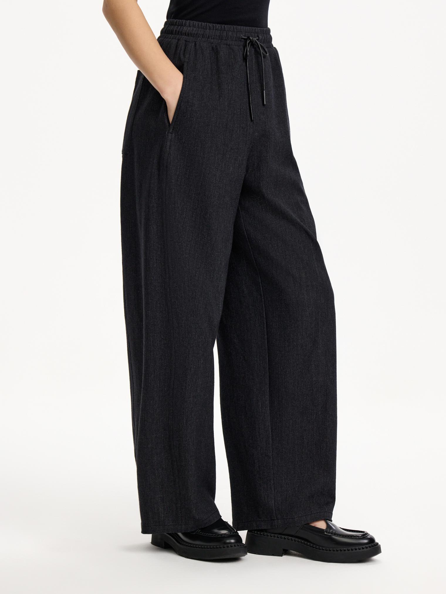Брюки широкого, расслабленного кроя с вертикальными рельефами с поясом на эластичной резинке с кулиской. Стильная и комфортная модель для творческих модников.