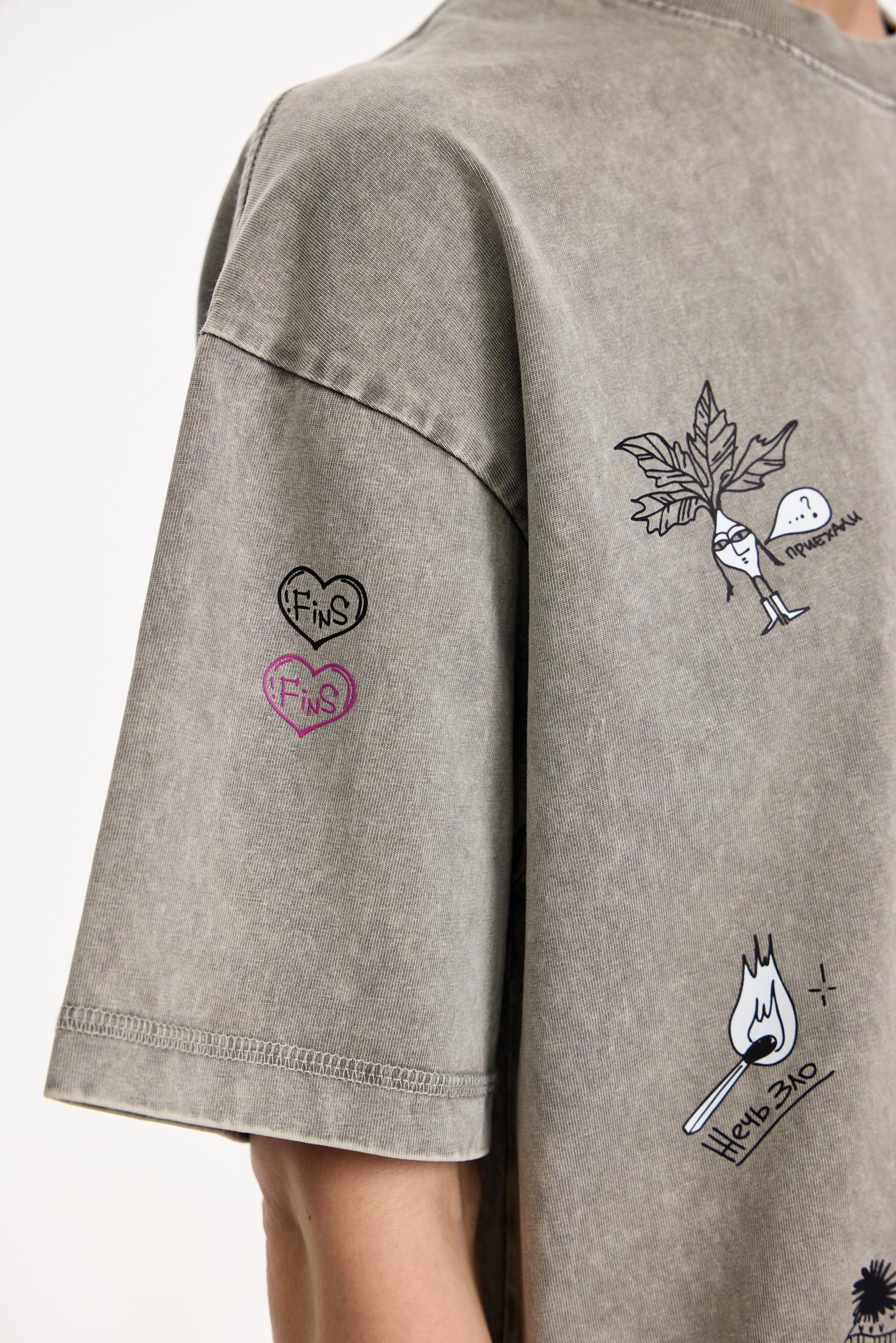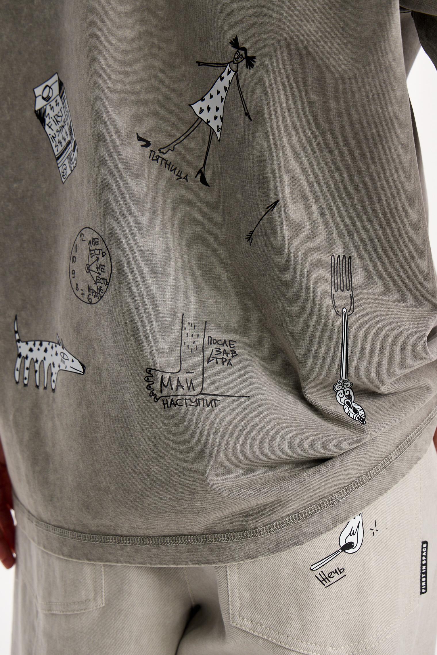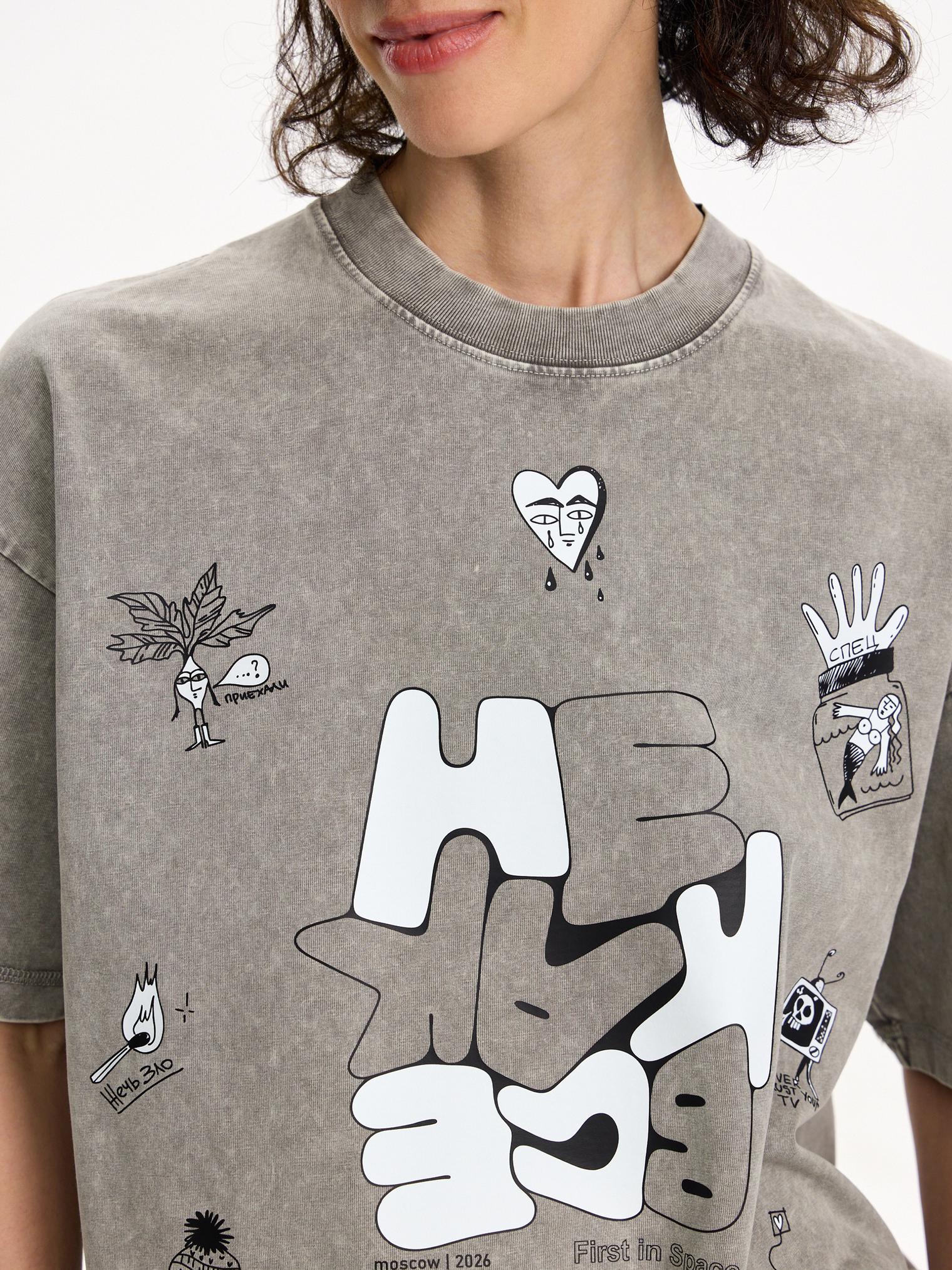 Вайбовая футболка из натурального хлопка. Современный оверсайз силуэт в сочетании с эффектом варки и смешными надписями и персонажами создает маст-хэв айтем для любого гардероба.