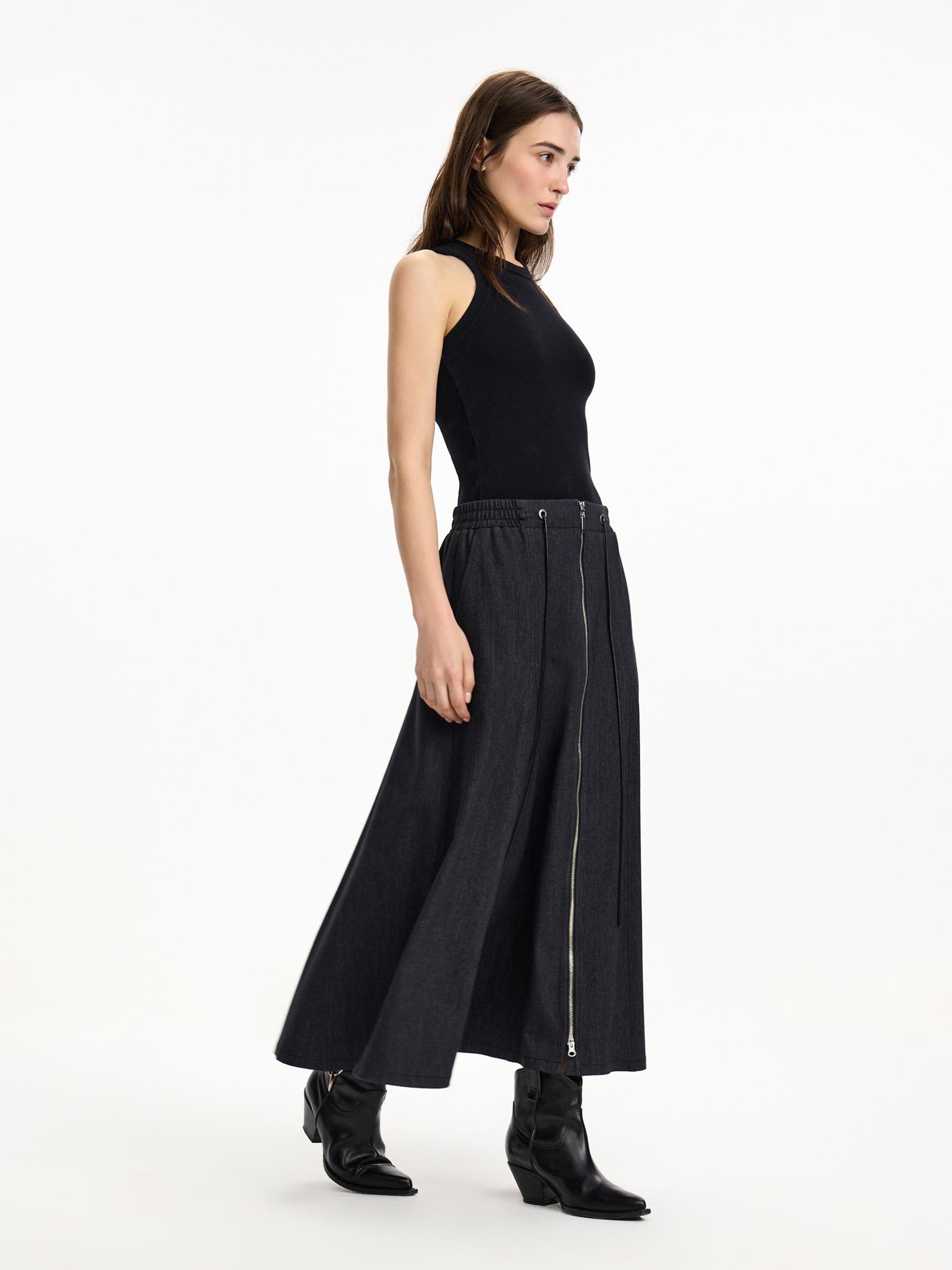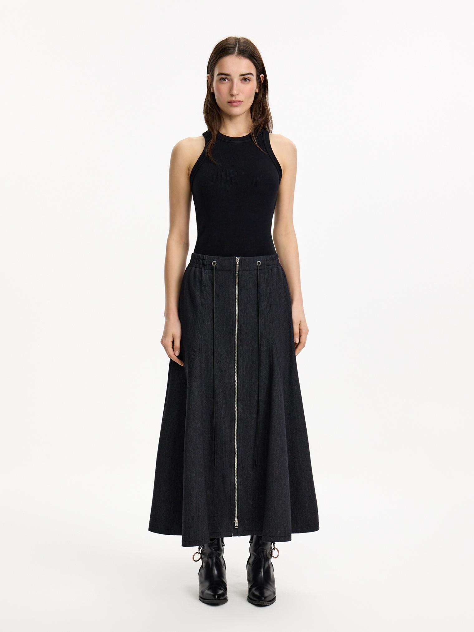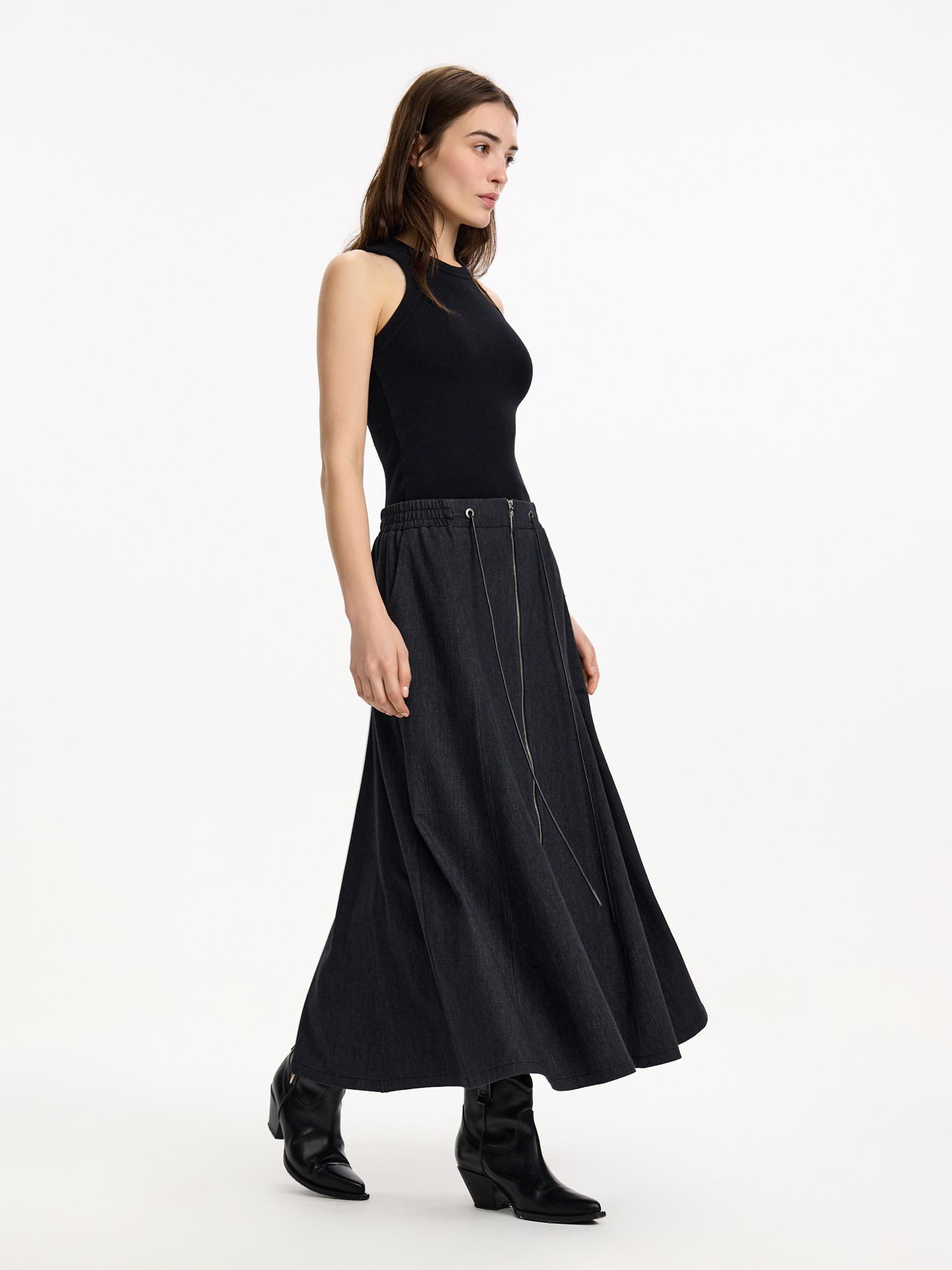 Лаконичная, при этом акцентная юбка годе с втачными клиньями и двухзамковой молнией по центру. Эластичный пояс с дополнительной регулировкой объема. Функциональные шнур и молния играют и декоративную функцию. Универсальная база под любой образ.