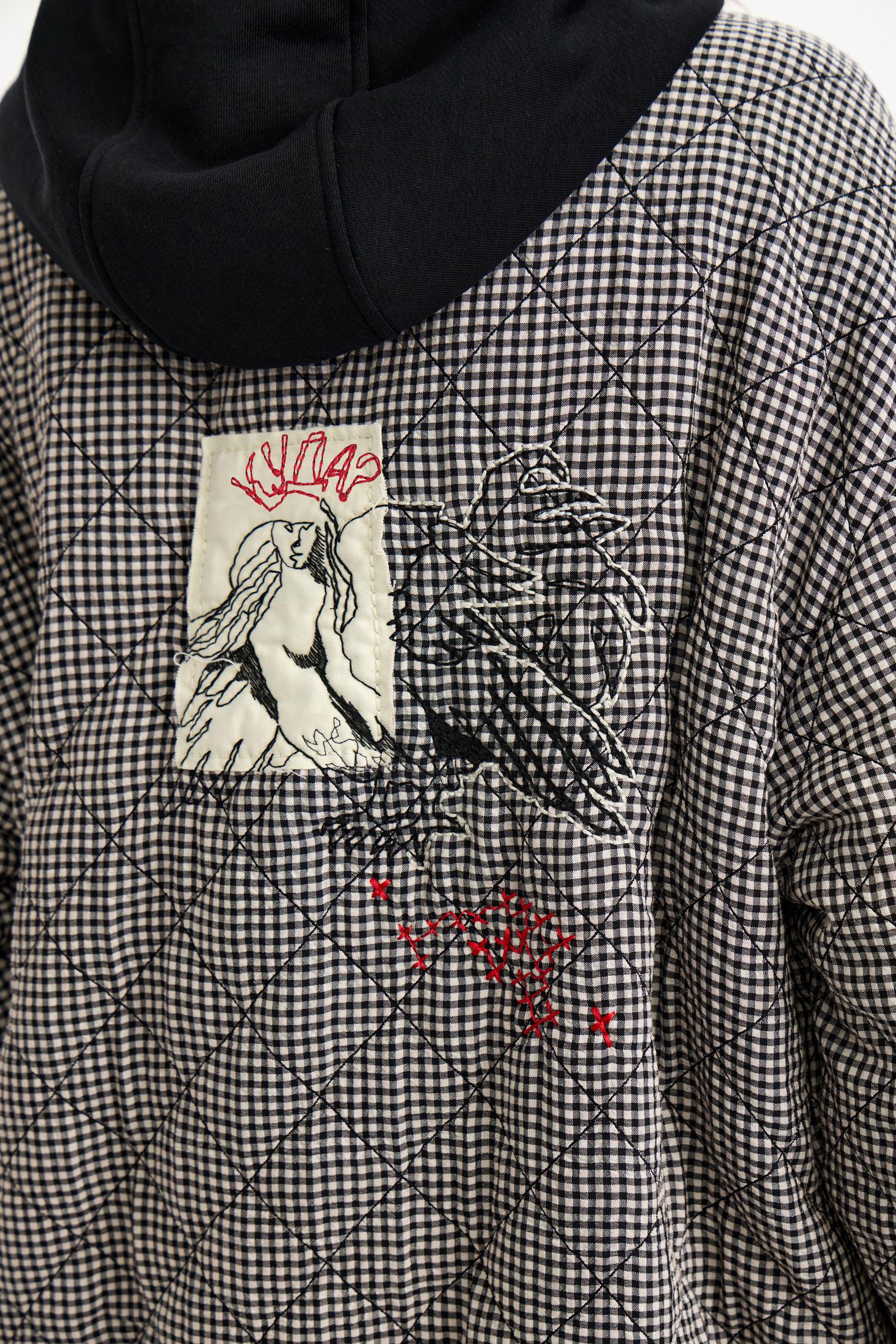 Мягкий бомбер – новая интерпретация привычной стёганой куртки. Двойная молния имитирует бомбер, накинутый на контрастную толстовку. Вышивки на кармане и спине расставляют акценты. Модель объемного кроя выполнена из очень мягкой и уютной ткани, в которой приятно будет переживать холодную и ветреную погоду.