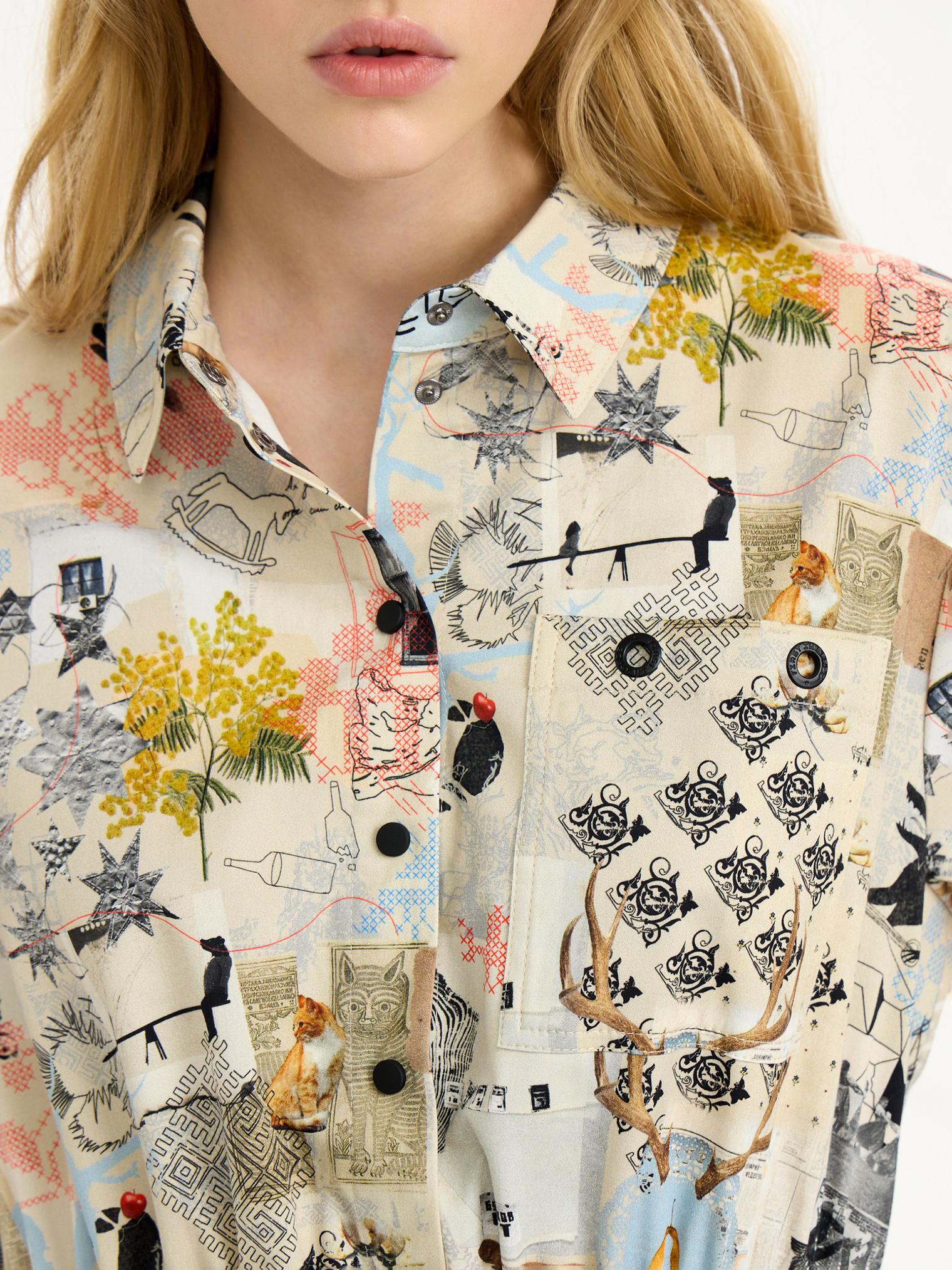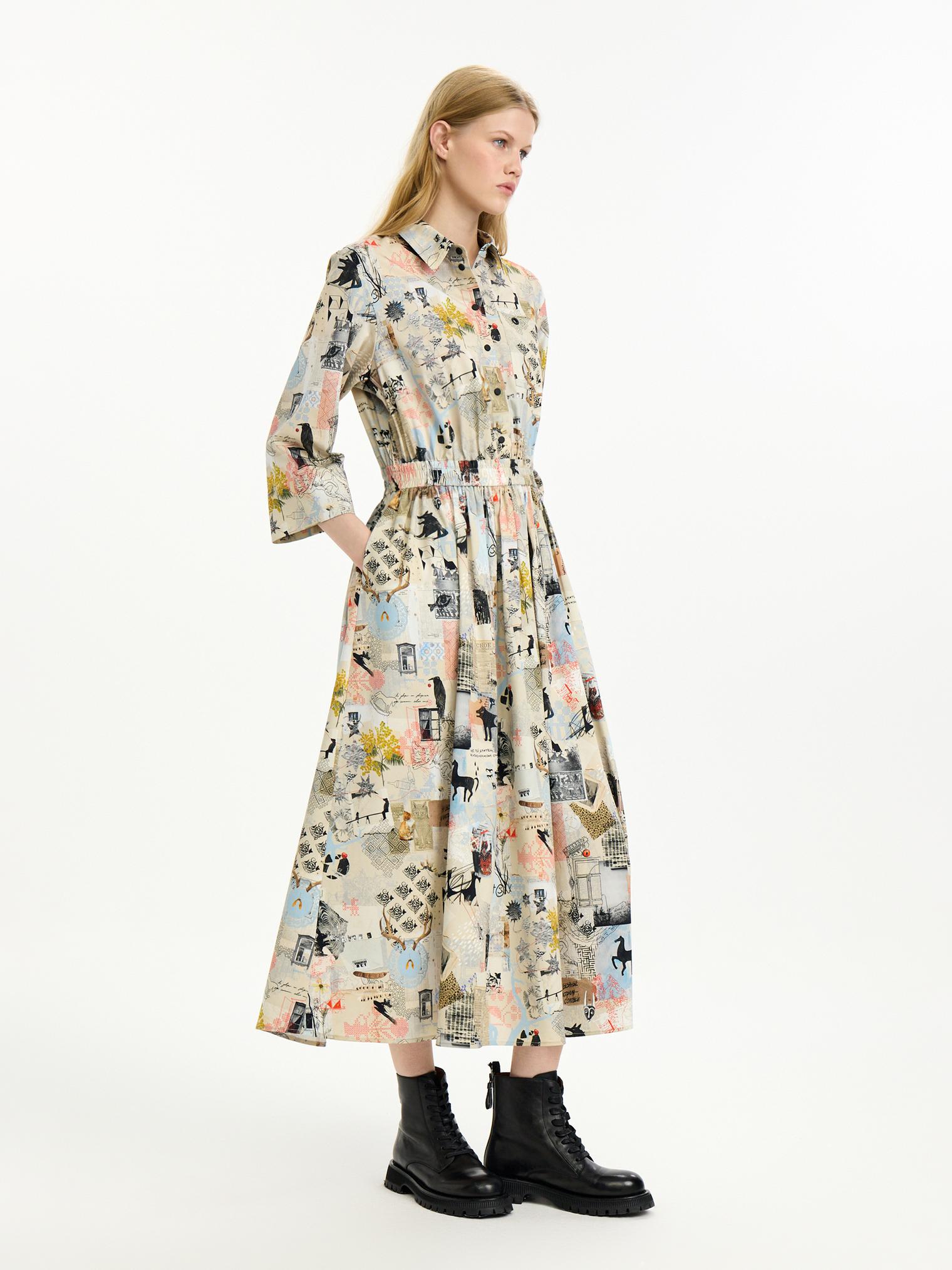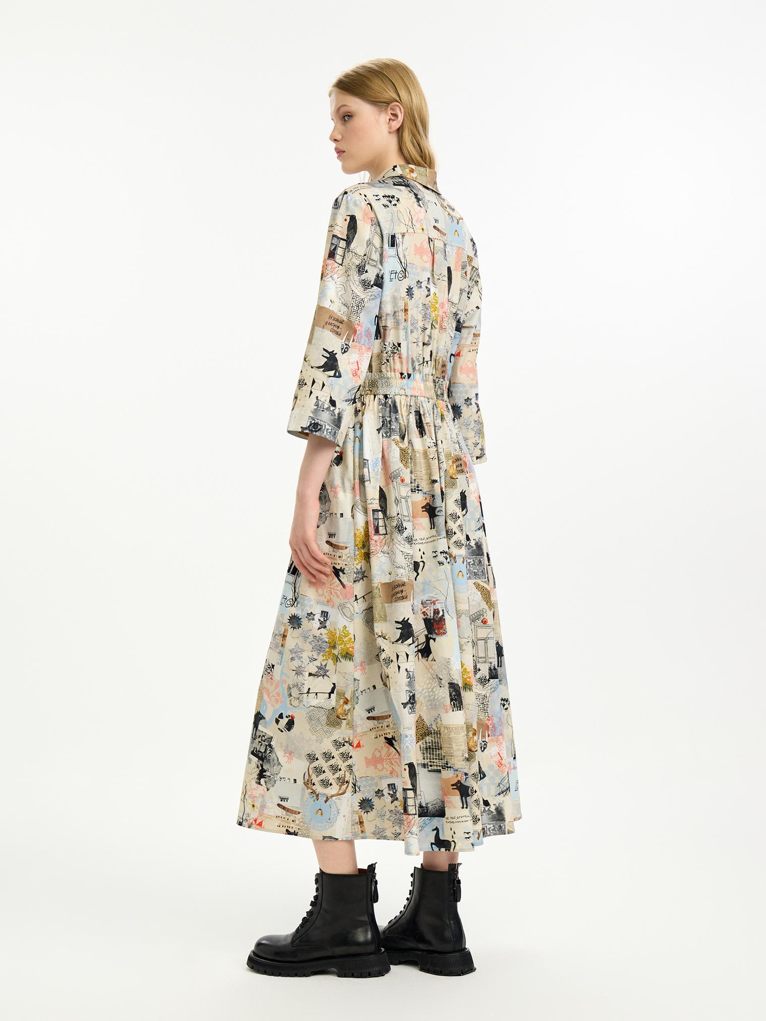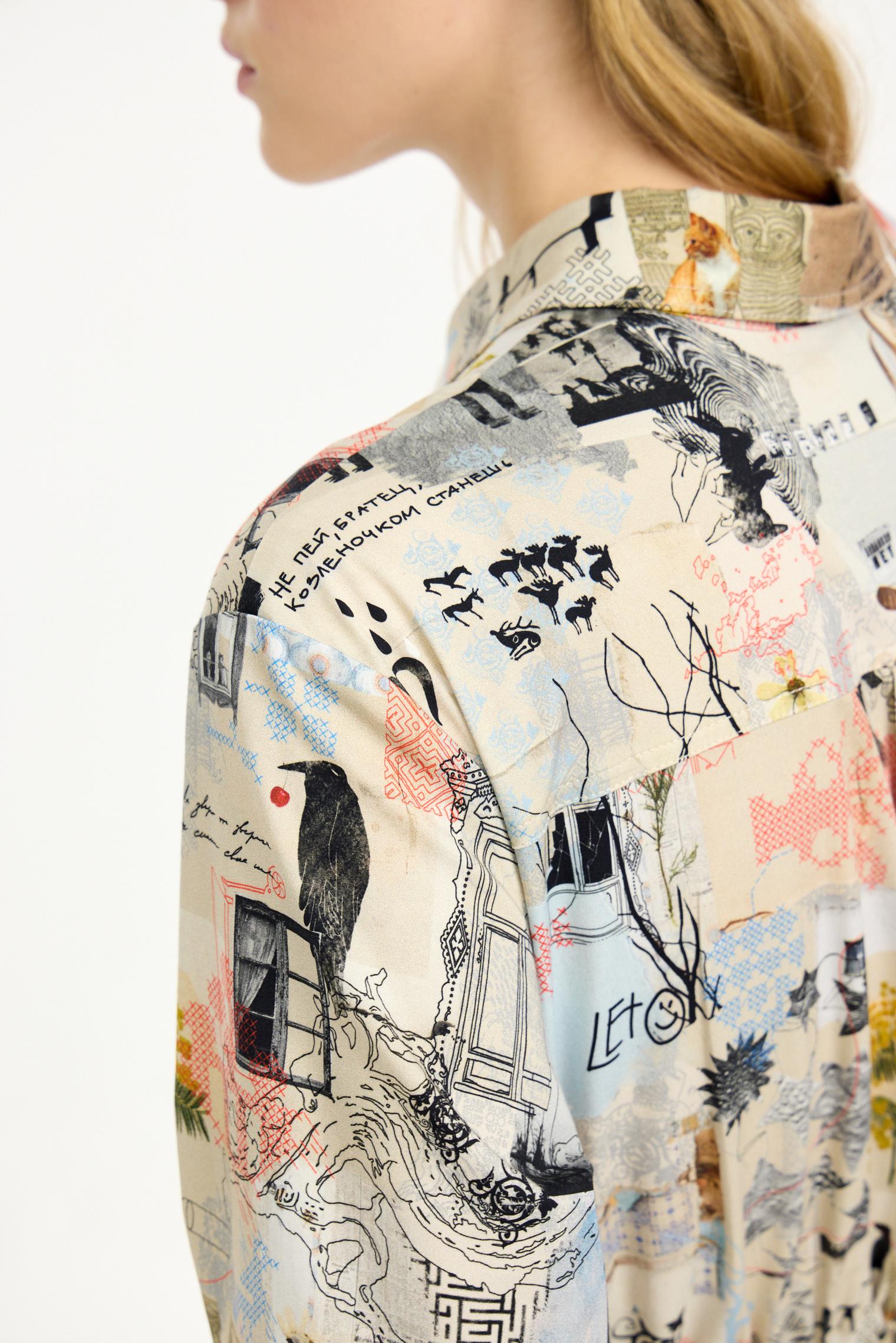 Платье-рубашка из хлопка с вискозой добавит красок демисезооному гардеробу. Мы адаптировали фасон модели, сделав ее приталенной за счёт резинки на поясе. Мы также улучшили материал: комбинированный хлопок с вискозой стал мягкче, легче струится и мало мнется. Авторский принт в коллажной технике добавляет визуальный колорит образу.
