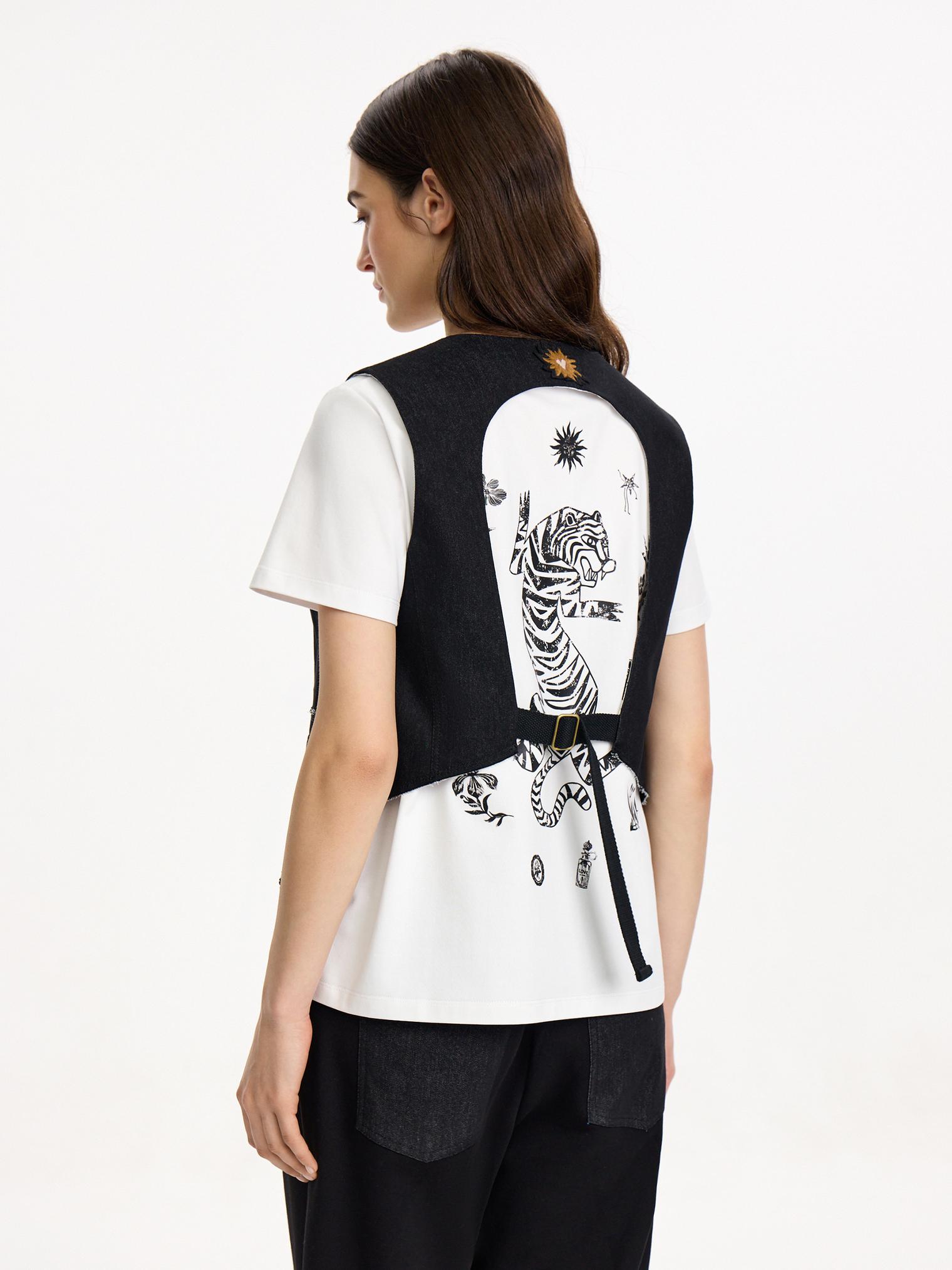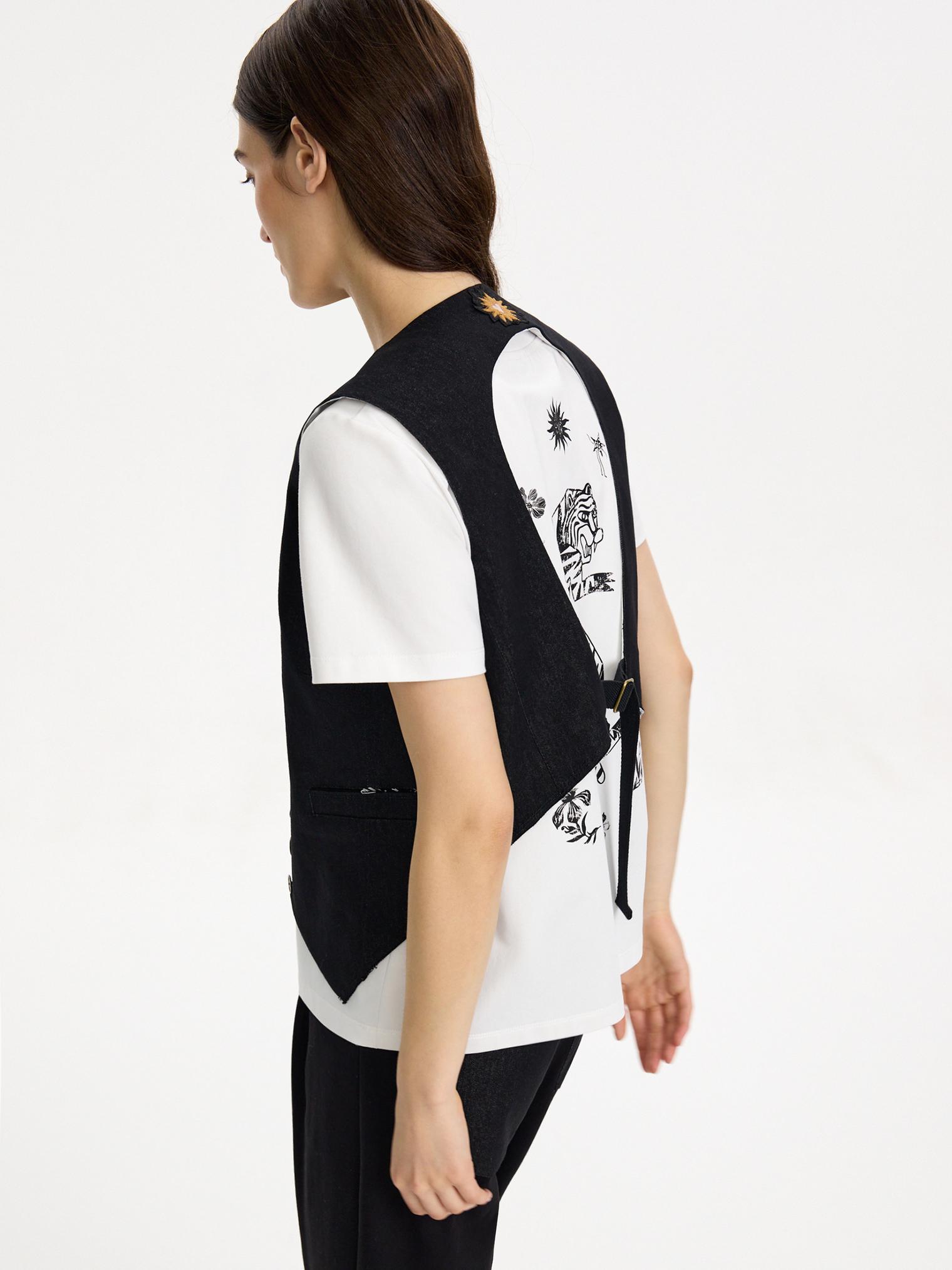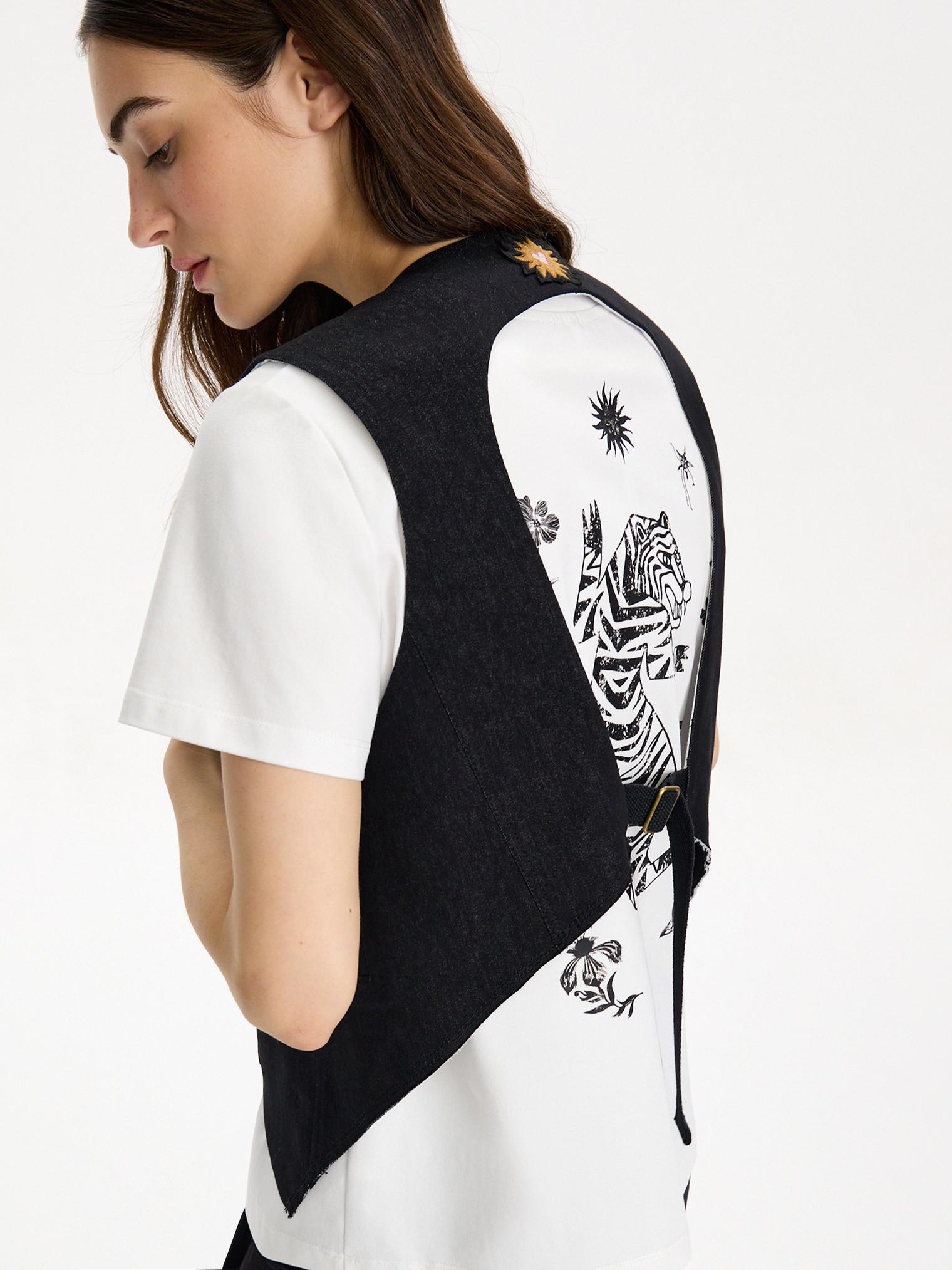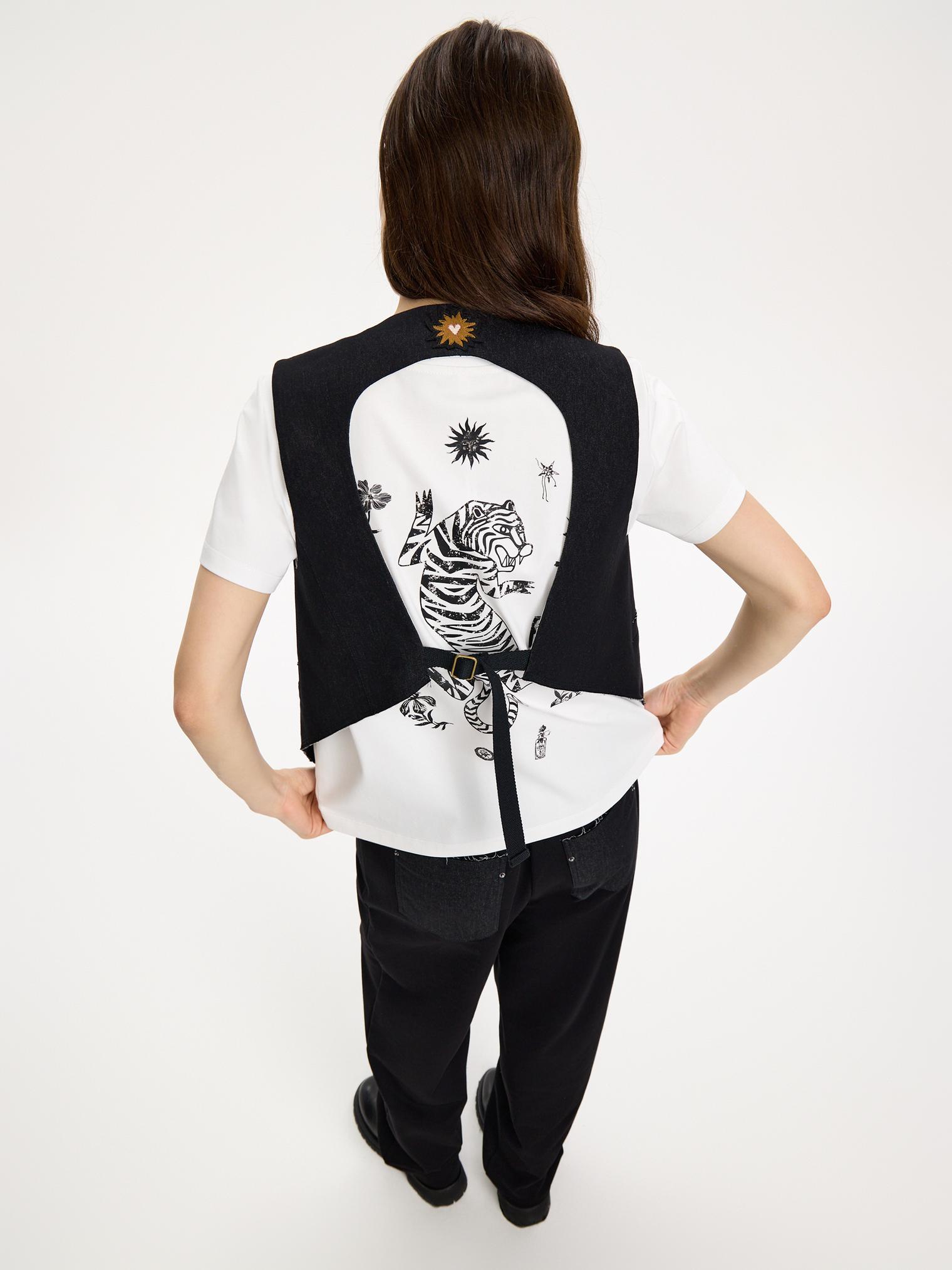 Новинка! Дизайнерский жилет с необычным вырезом и изображением солнца на спинке. Идеально смотрится с футболкой с принтом тига на спине.