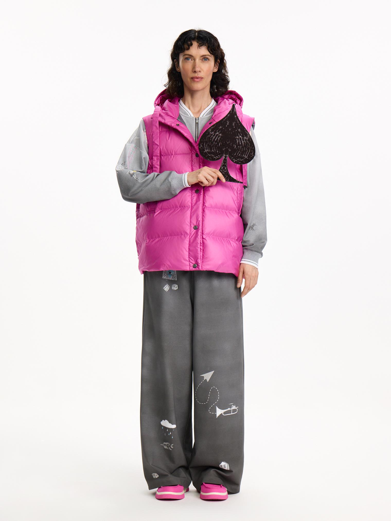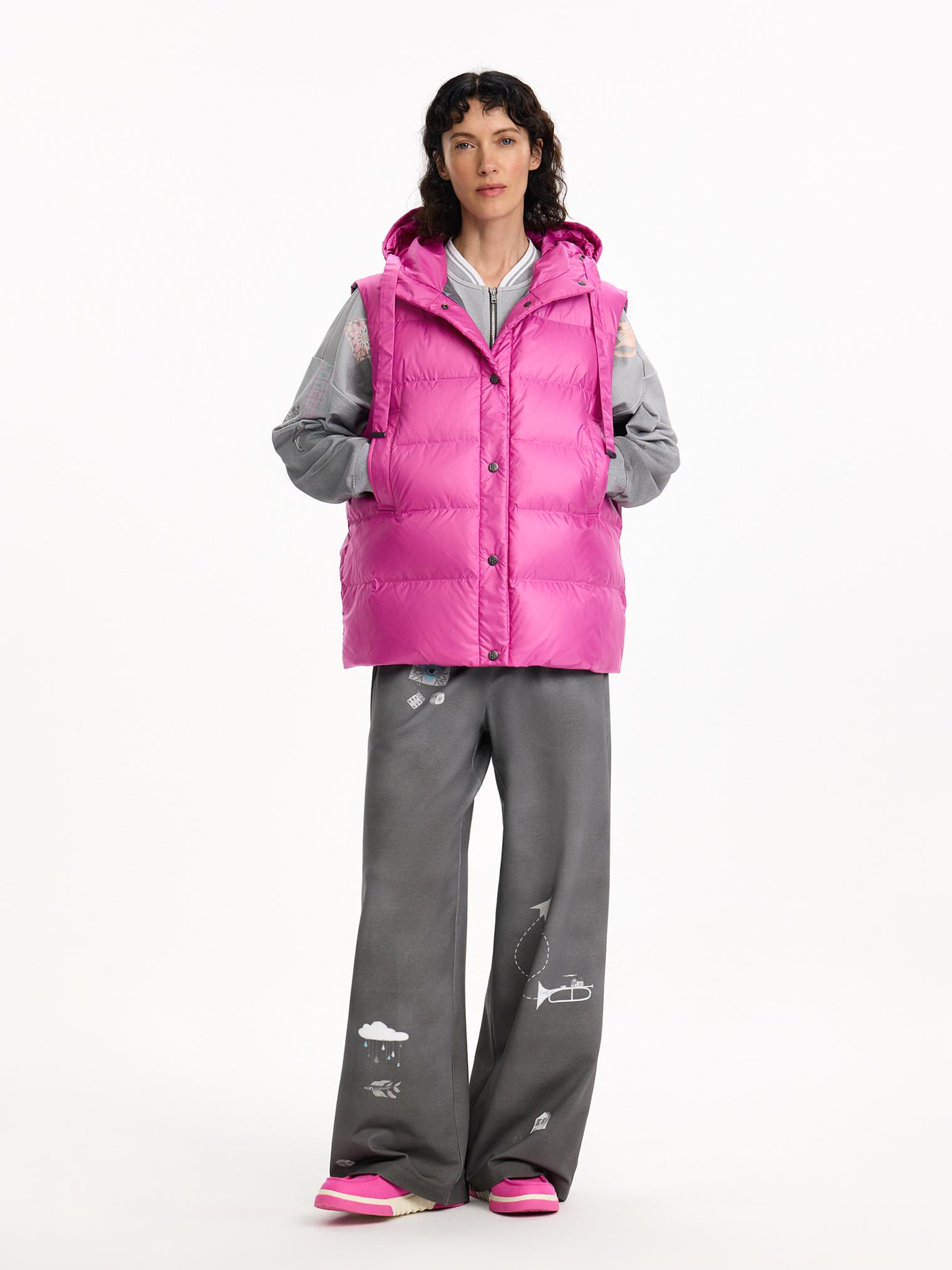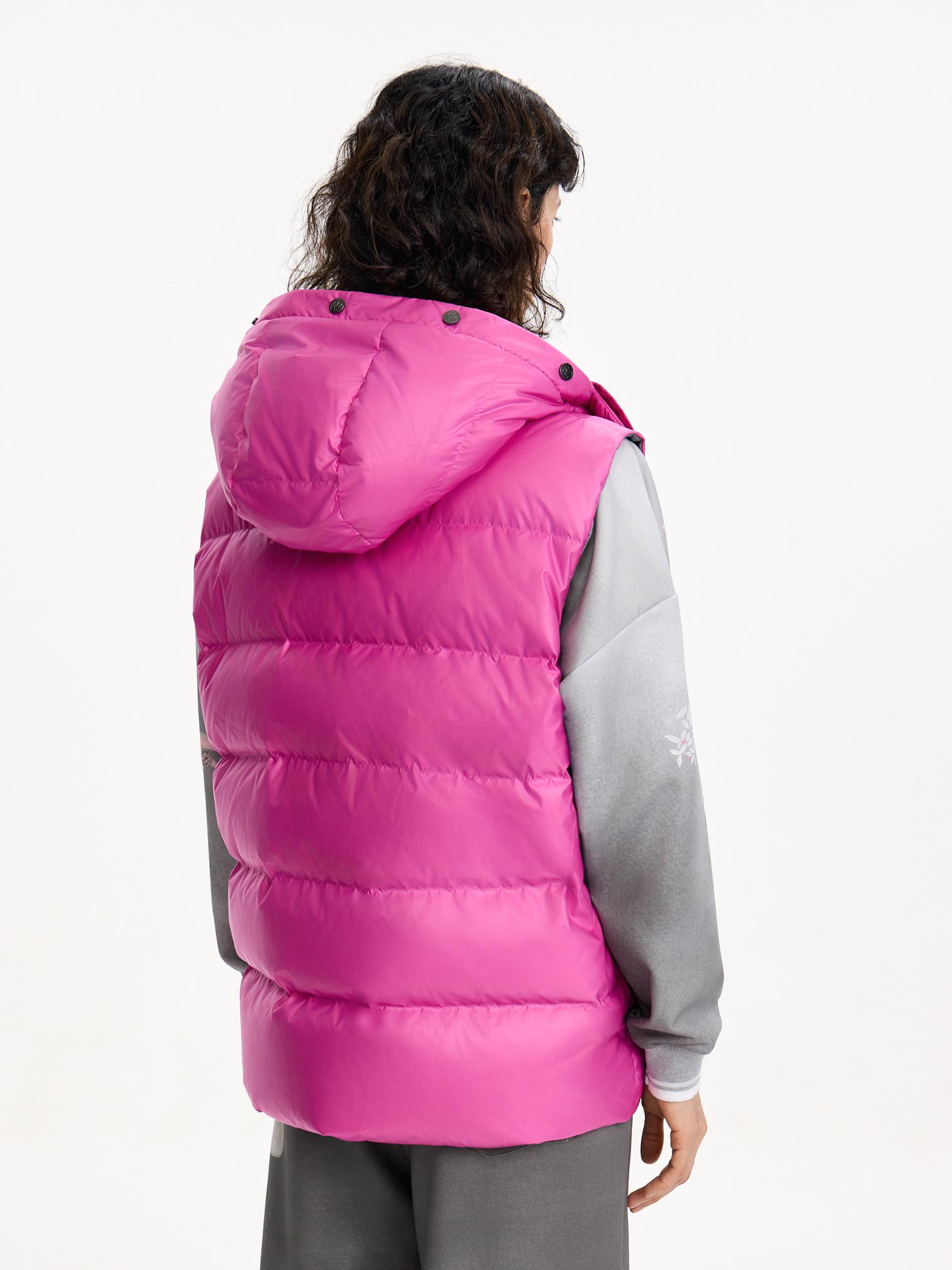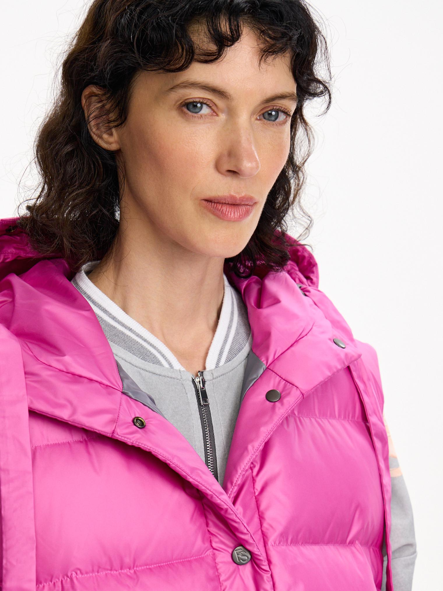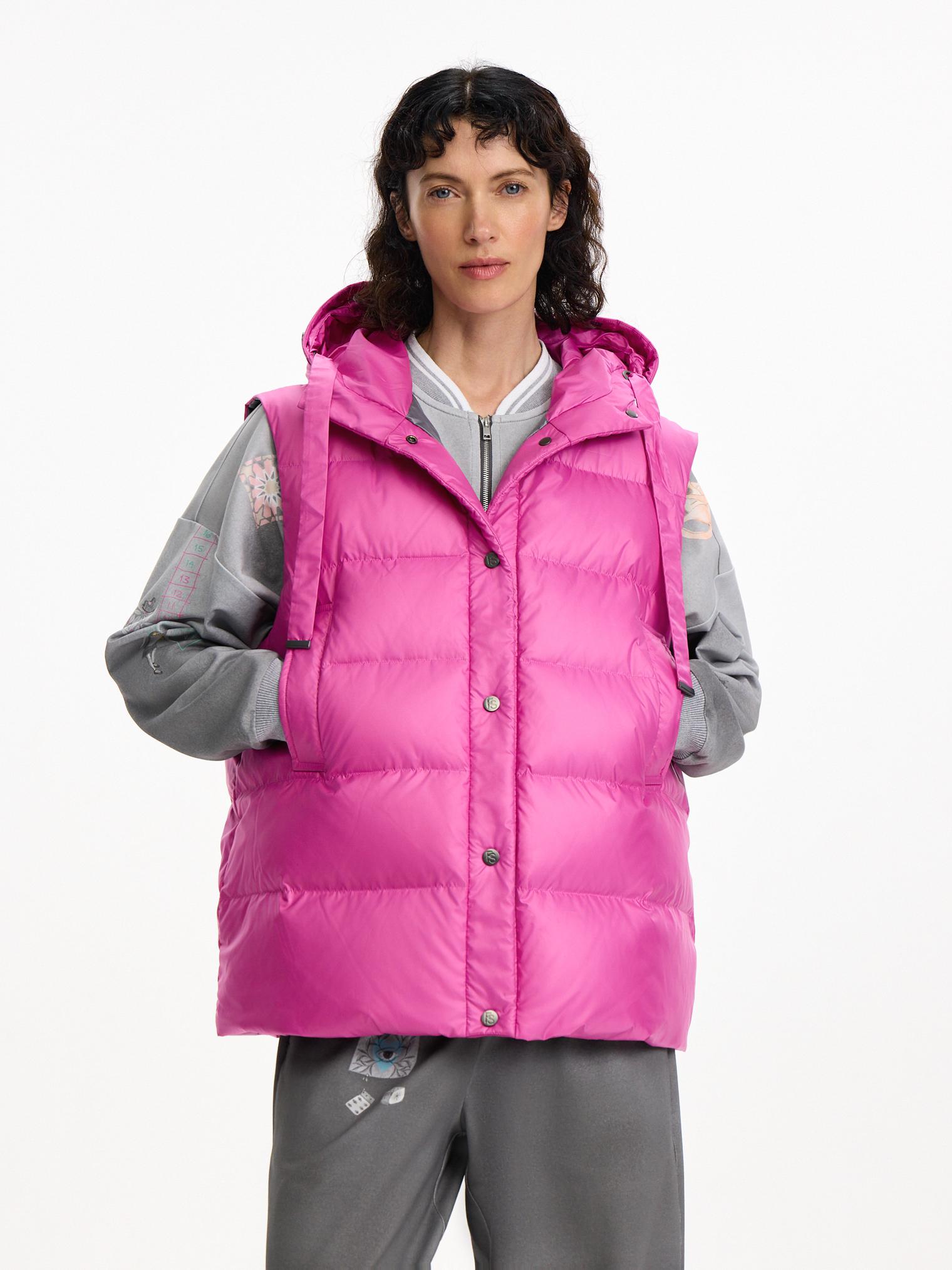Жилет в оттенке цикламен не оставит вас незамеченной. Модель с тонким натуральным утеплителем из пуха и пера и капюшоном на кулиске станет идеальным выбором на неопределенную демисезонную погоду. Жизнерадостный оттенок цикламена создает стильный контраст с темно-серым подкладом.